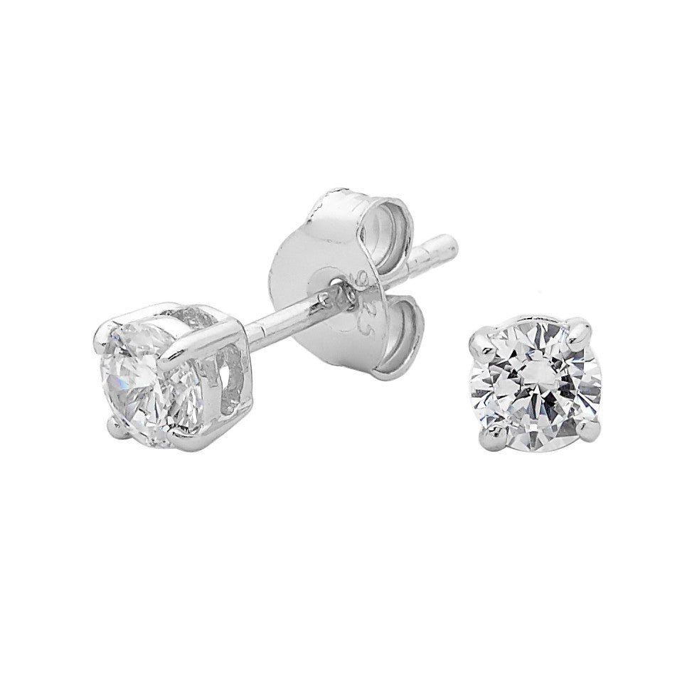 A perfect pair of earrings for any woman! Simple and easy, these earrings are definitely the finishing touch to any outfit, day or night. They feature clear 4mm round cubic zirconias claw set in rhodium plated sterling silver, these elegant stud earrings are just the right size to wear every day. Team it up with a Georgini pendant and ring for an elegant glam look.