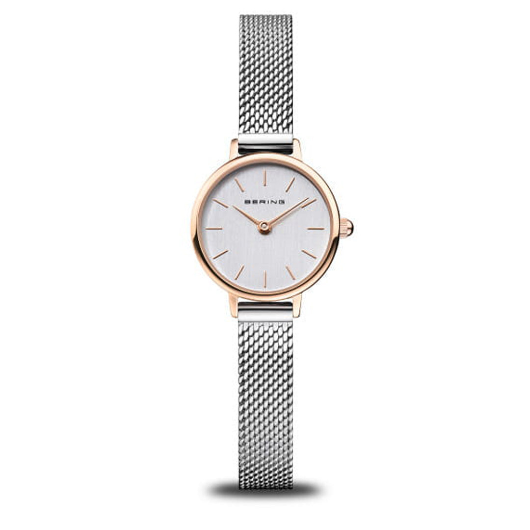 Bering Classic 26mm Rose Gold Silver Milanese Strap Watch
