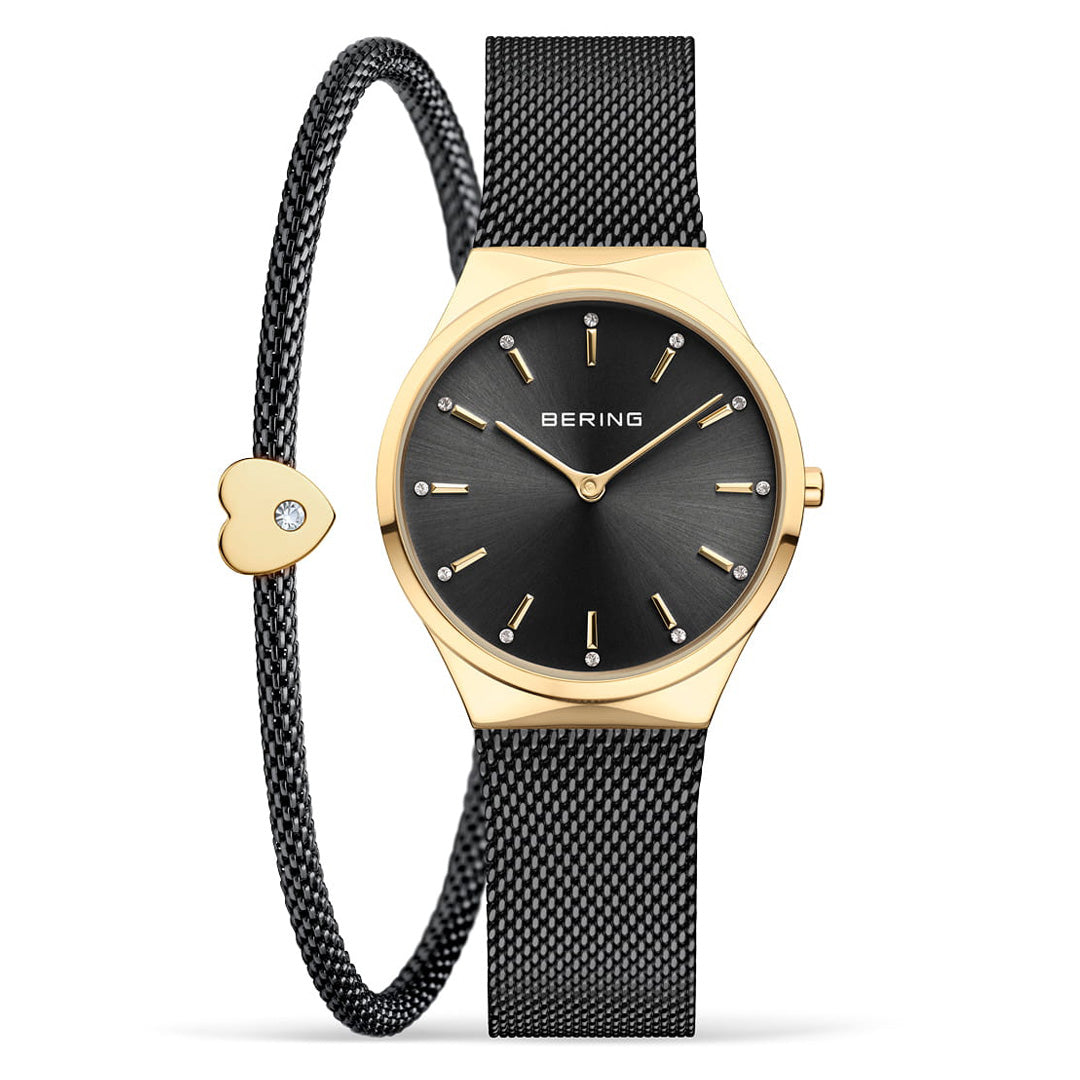 Bering Classic Gift Set 31mm Gold Black Stainless Steel Strap with Matching Bracelet Watch