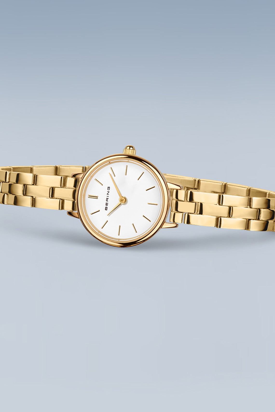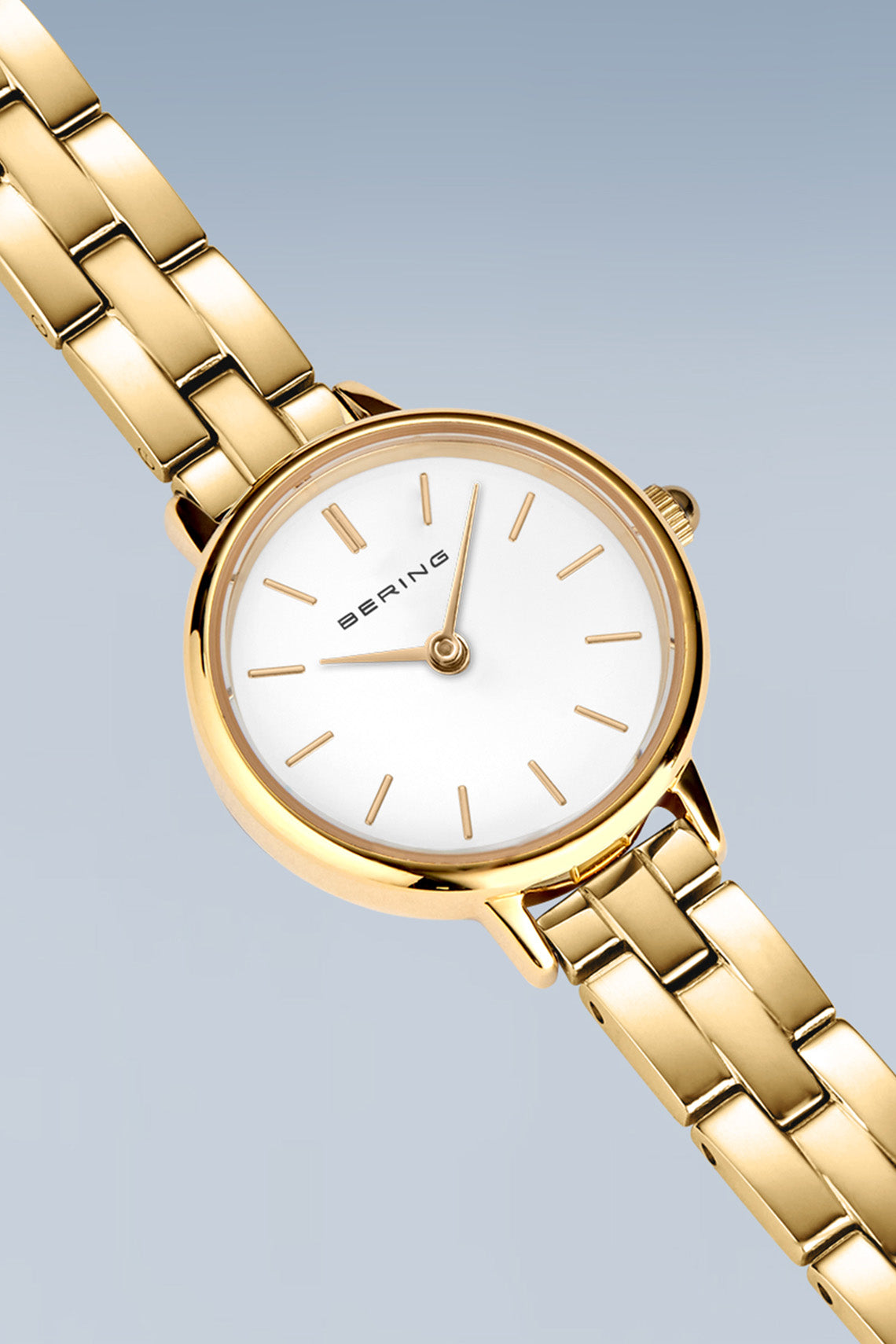 Bering Classic Ladies 26mm White Dial Gold Strap Watch