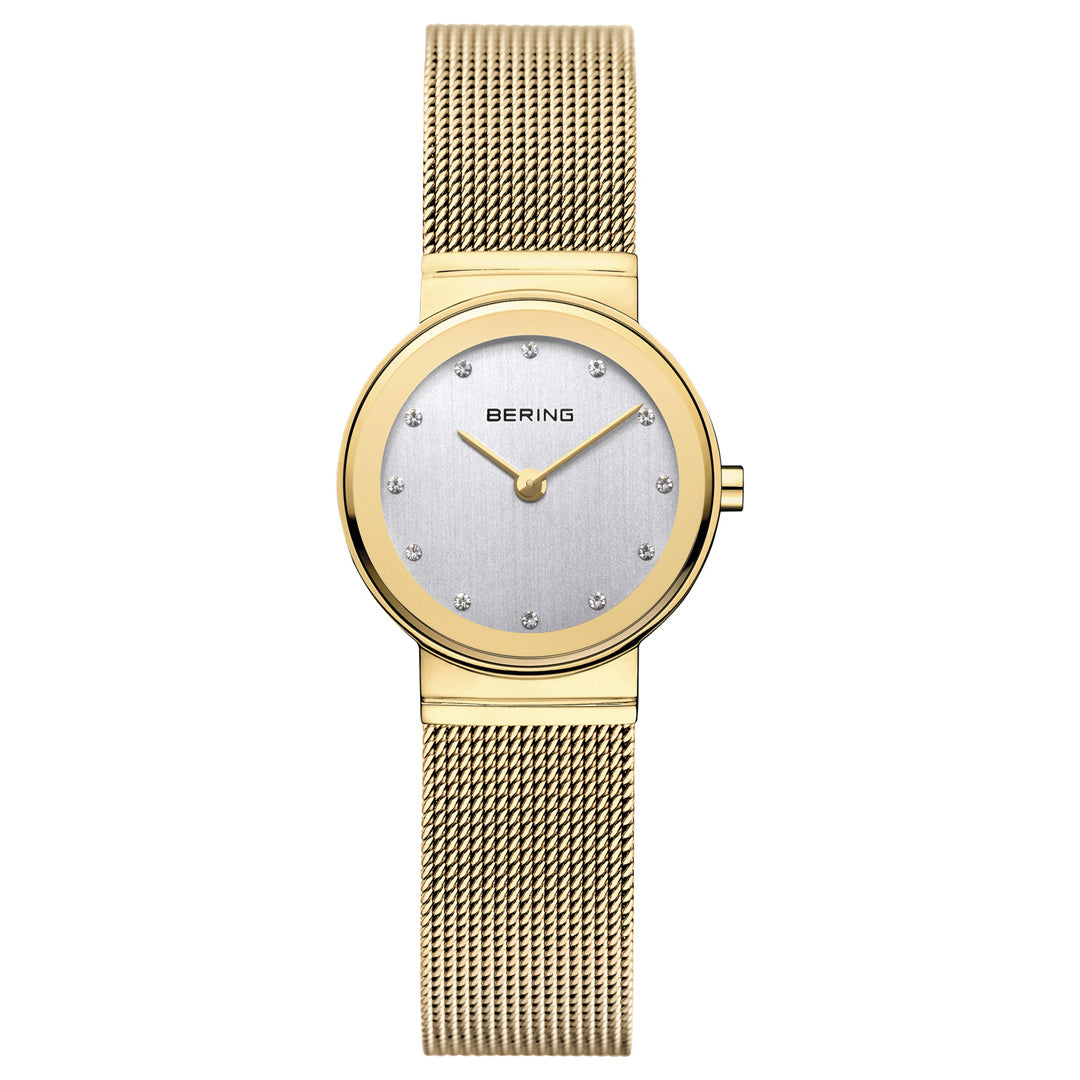 The polished gold coloured stainless steel case, made of pure, high quality, medical-grade stainless steel (316L), in combination with the modern gold coloured milanese strap, provides the classic BERING look. The fine workmanship of the milanese strap gives the watch a refined, almost noble touch. A silver coloured dial embellished with SWAROVSKI ELEMENTS and protected by crystal clear, scratch-resistant sapphire crystal perfectly completes the classic look.