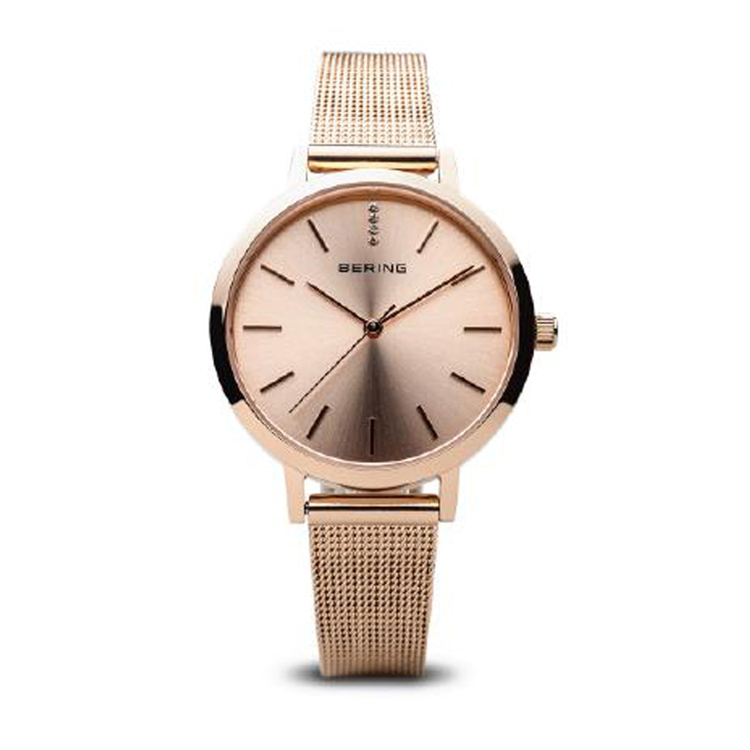Bering Classic Polished Rose Gold 34mm Mesh Watch