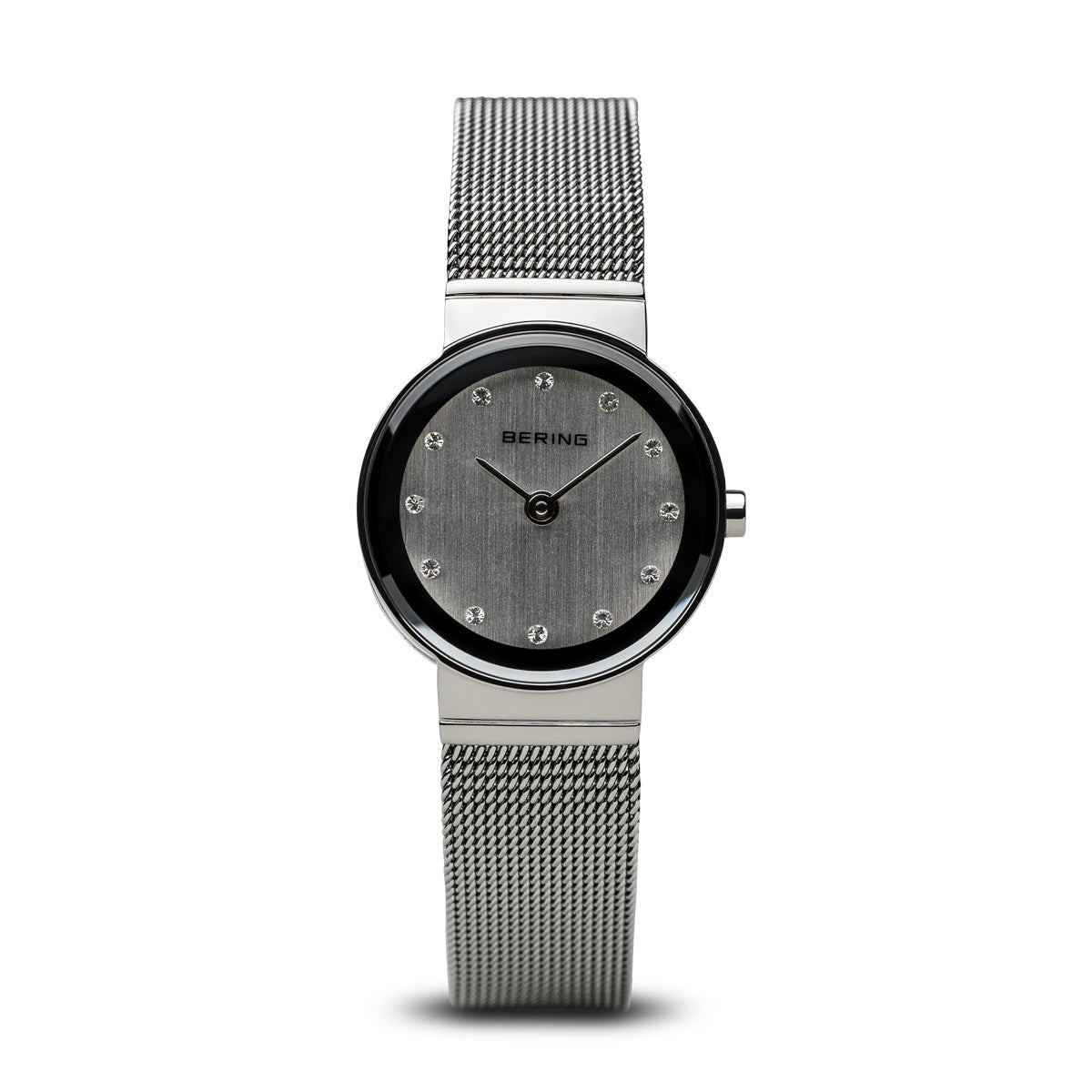 The polished silver coloured stainless steel case, made of pure, high quality, medical-grade stainless steel (316L), in combination with the modern silver coloured milanese strap, provides the classic BERING look. The fine workmanship of the milanese strap gives the watch a refined, almost noble touch. A silver coloured dial embellished with SWAROVSKI ELEMENTS and protected by crystal clear, scratch-resistant sapphire crystal perfectly completes the classic look.