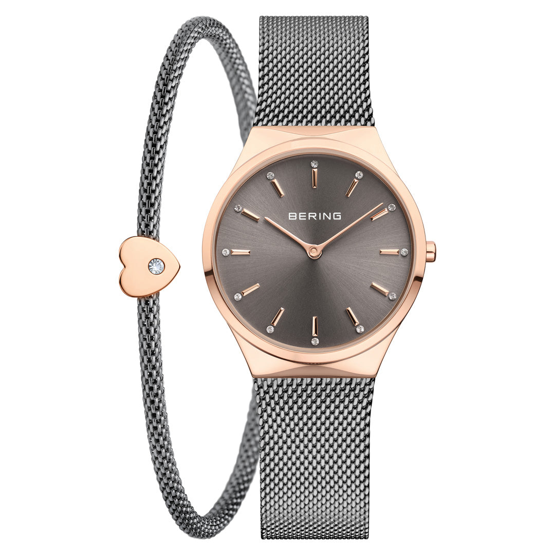 Bering Gift Set 35mm Rose Gold Grey Milanese Strap with Matching Bracelet Watch