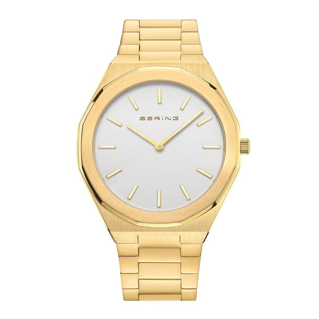 Bering Mens Classic Polished 41mm Gold Strap Watch