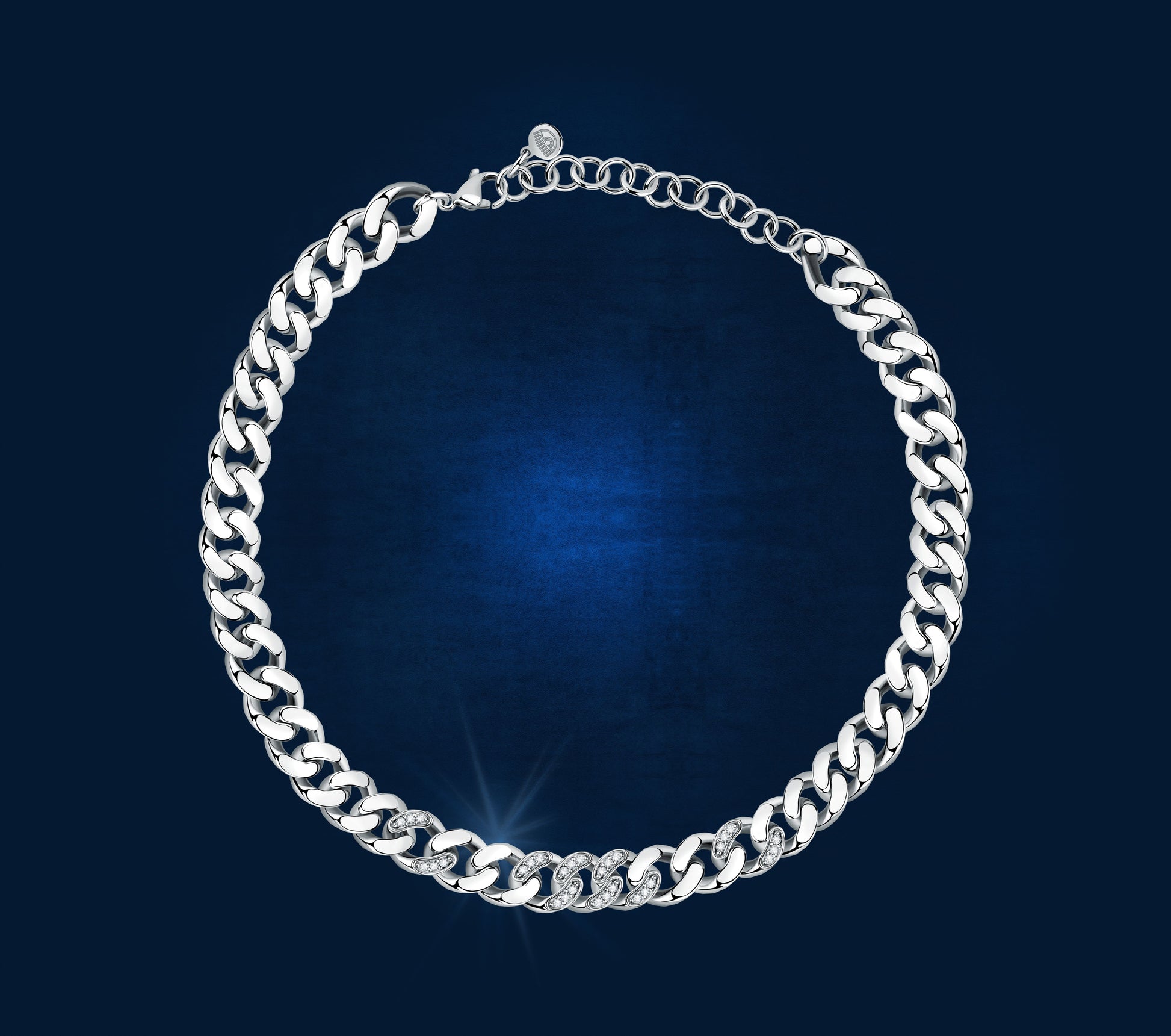 Chiara Ferragni presents trendy fashionable designs in all metal chains embellished with zircon in the Chain collection. Glamorous jewellery pieces with a flair for attractive and showy designs highlight the ethos of this collection. Italian perfection in a trendy collection.