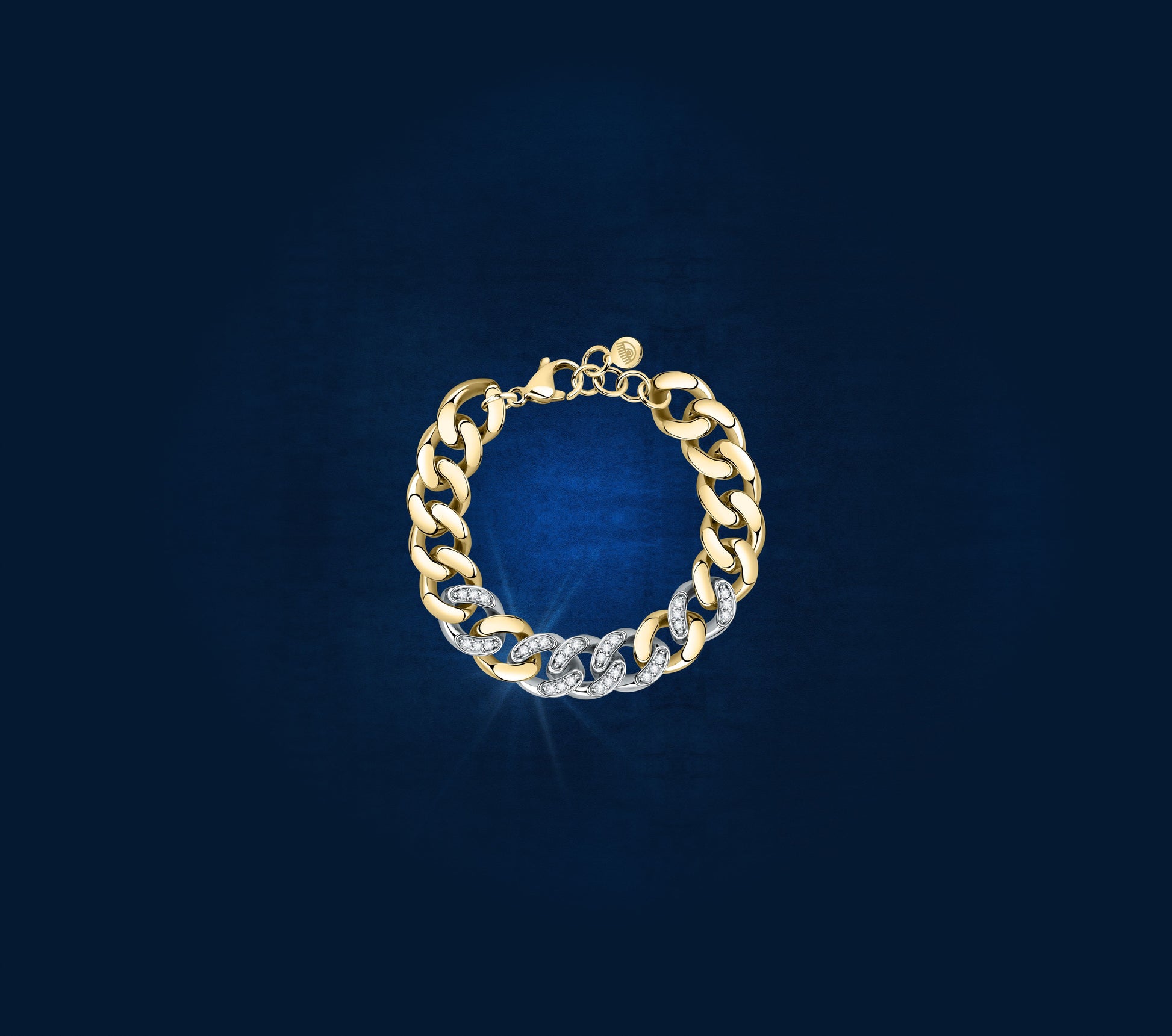 Chiara Ferragni presents trendy fashionable designs in all metal chains embellished with zircon in the Chain collection. Glamorous jewellery pieces with a flair for attractive and showy designs highlight the ethos of this collection. Italian perfection in a trendy collection.