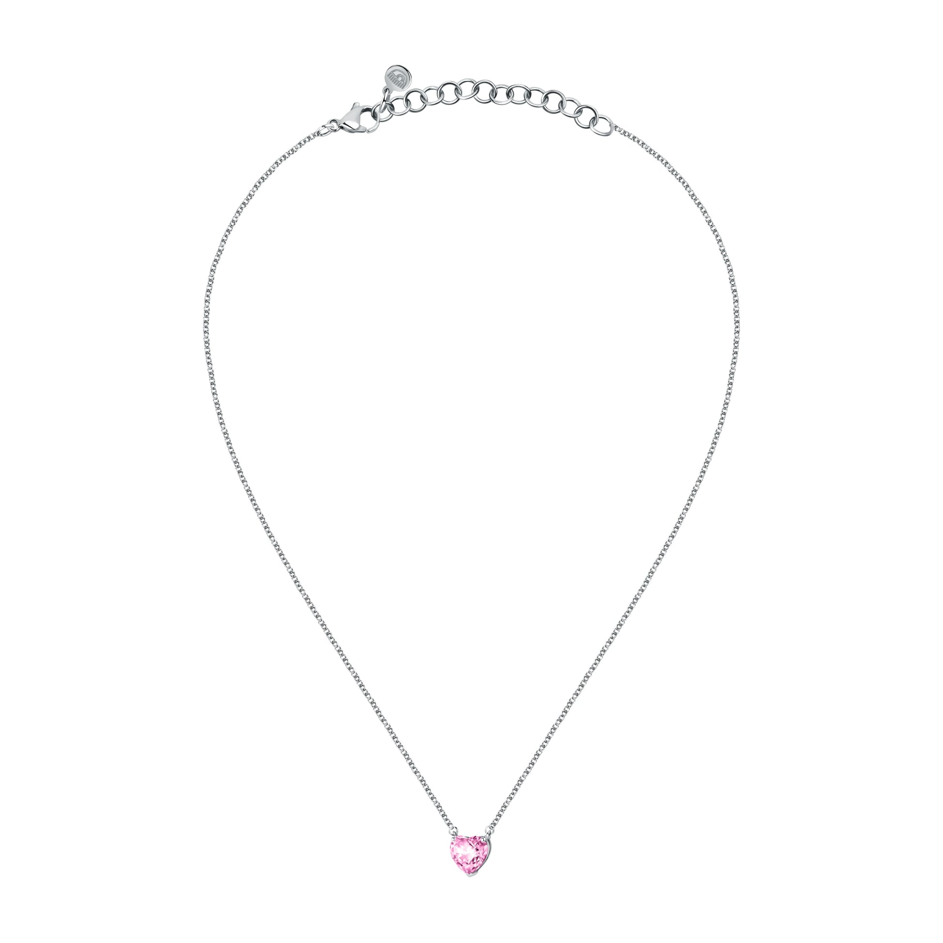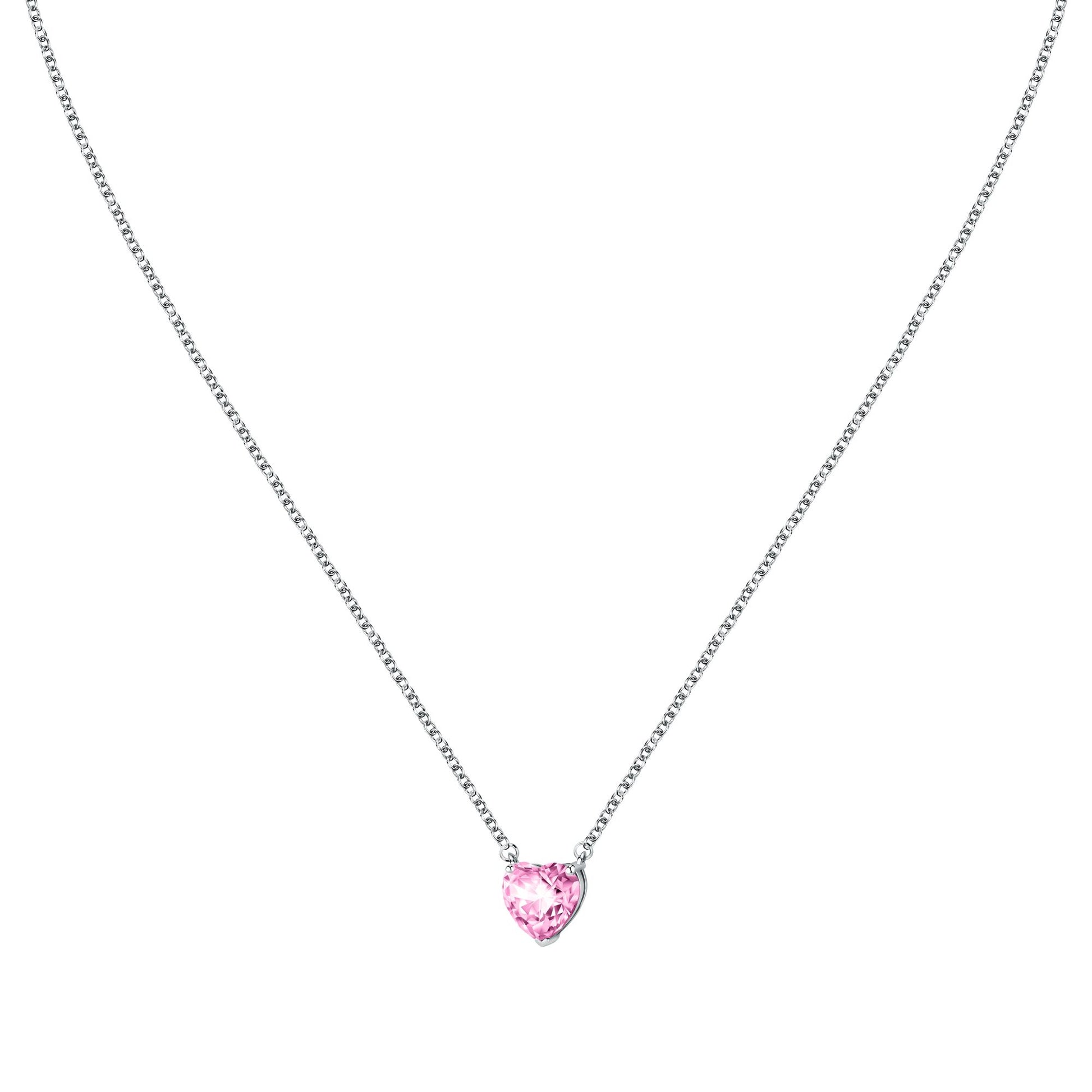 Presenting the Diamond Heart Silver Fairytale Pendant. Featuring a glittering pink fairytale heart stone on a silver chain, this necklace is perfect as a gift, or to complement an array of outfits.