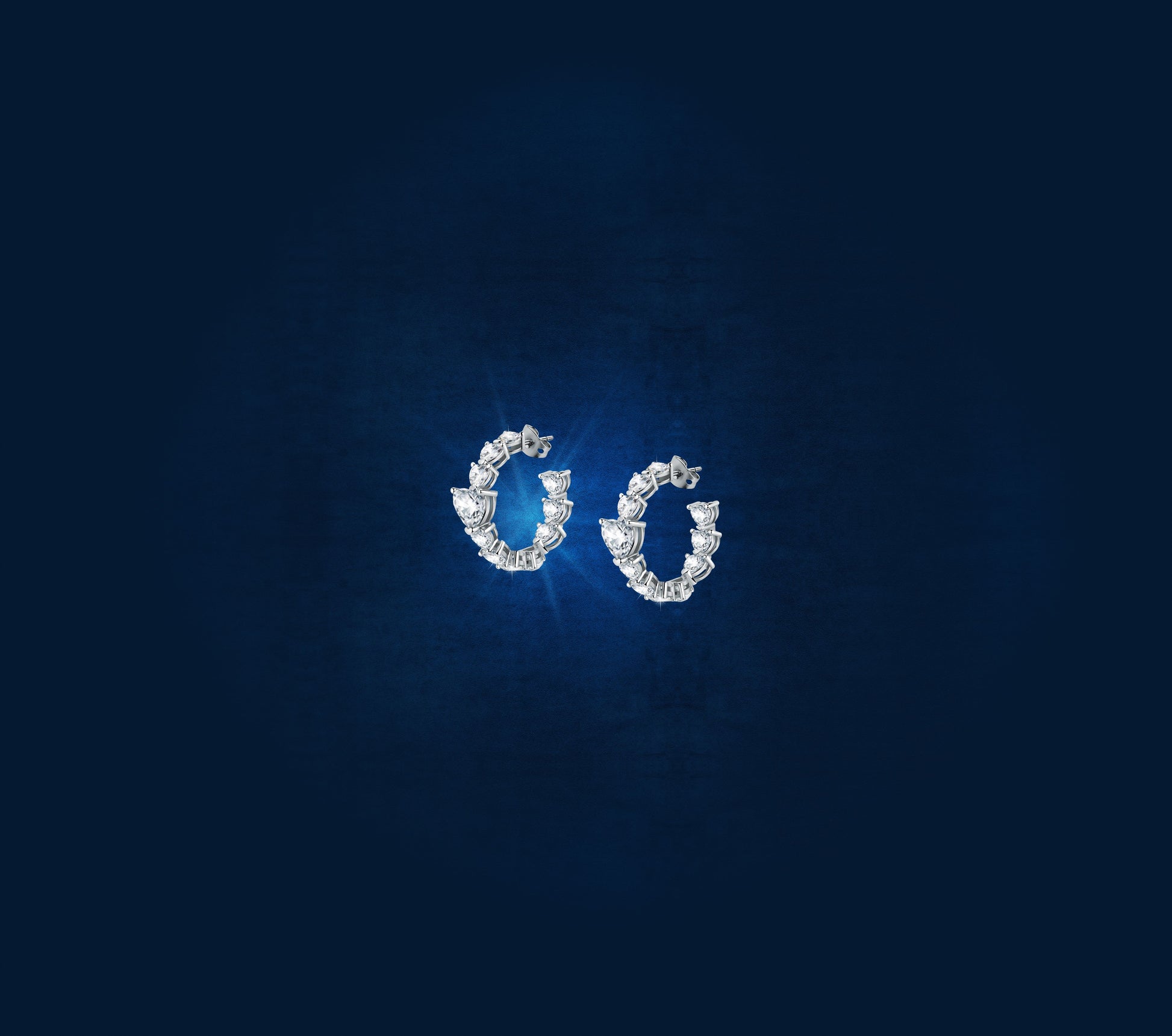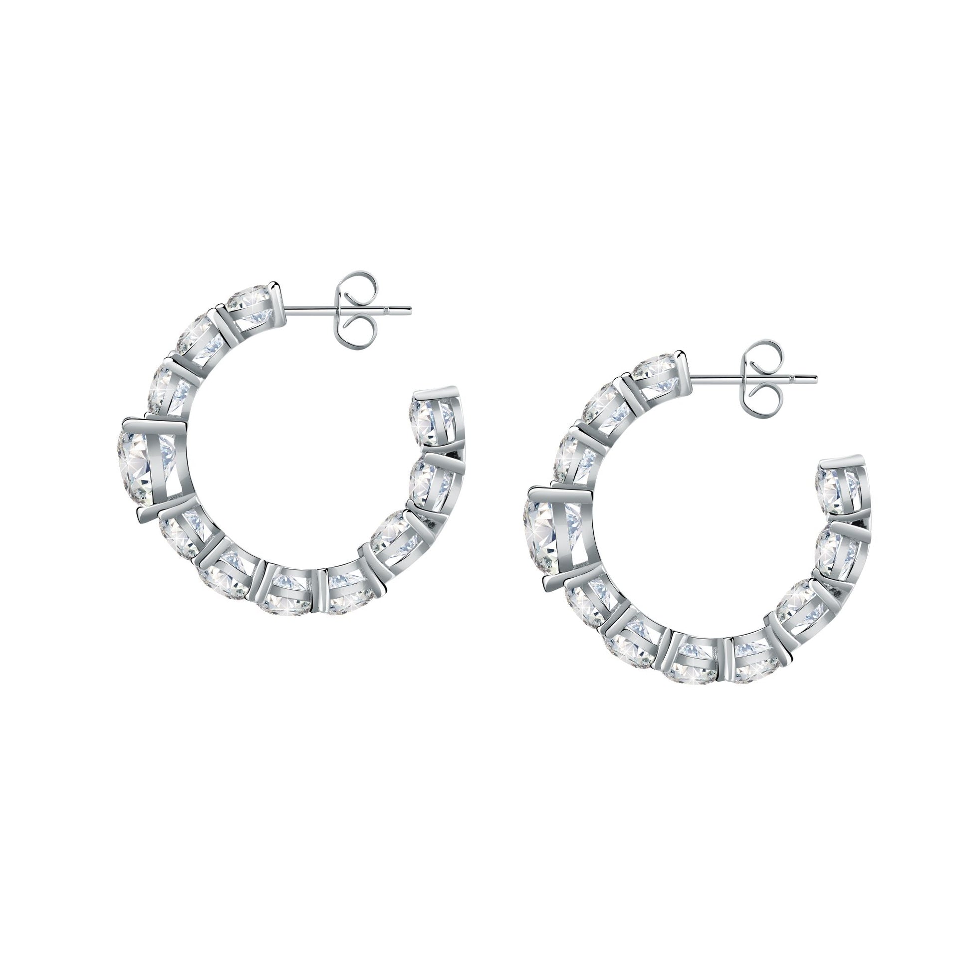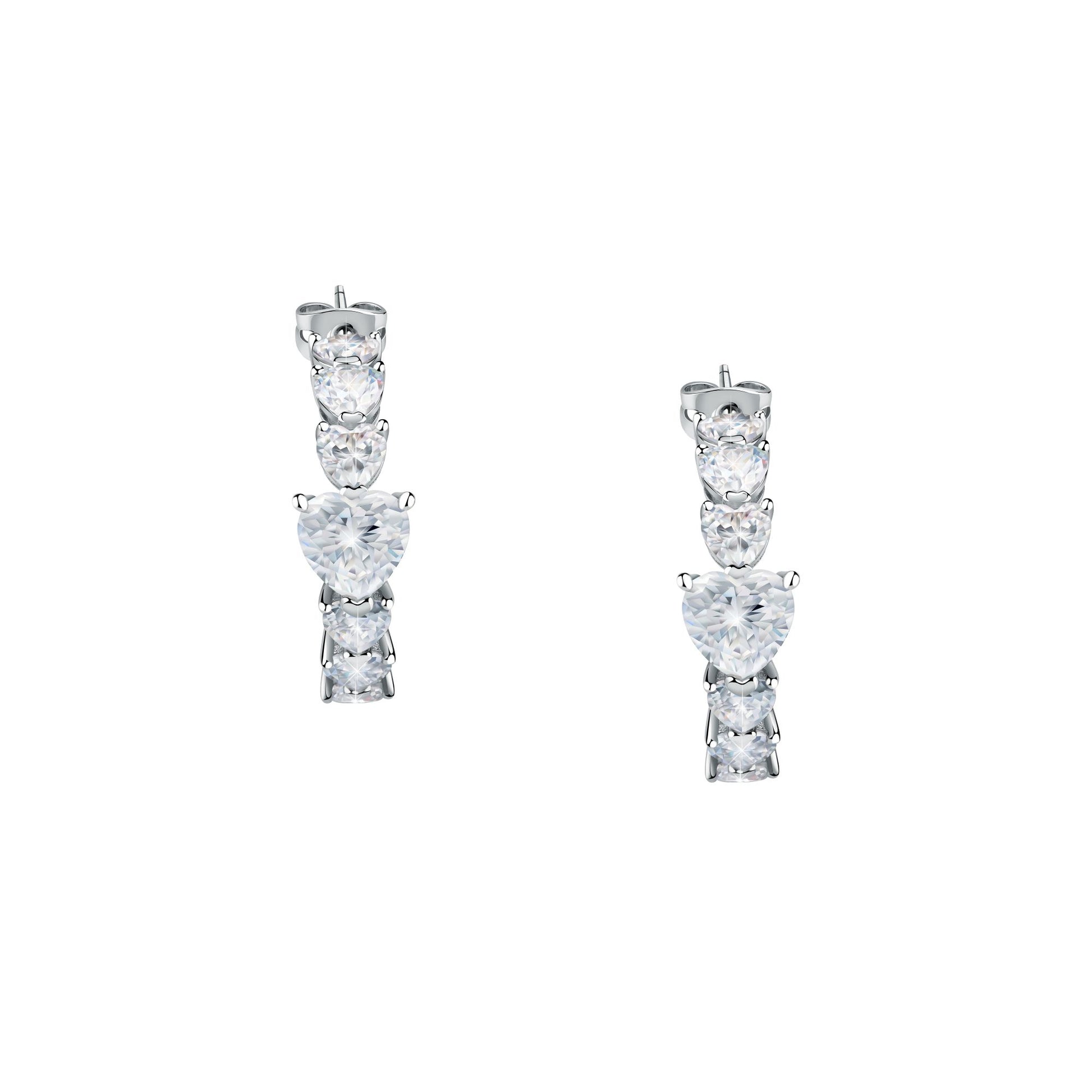 Presenting the Diamond Heart White Heart Hoop Earrings. Featuring glittering white heart stones set in silver, these earrings are perfect as a gift, or to complement an array of outfits.