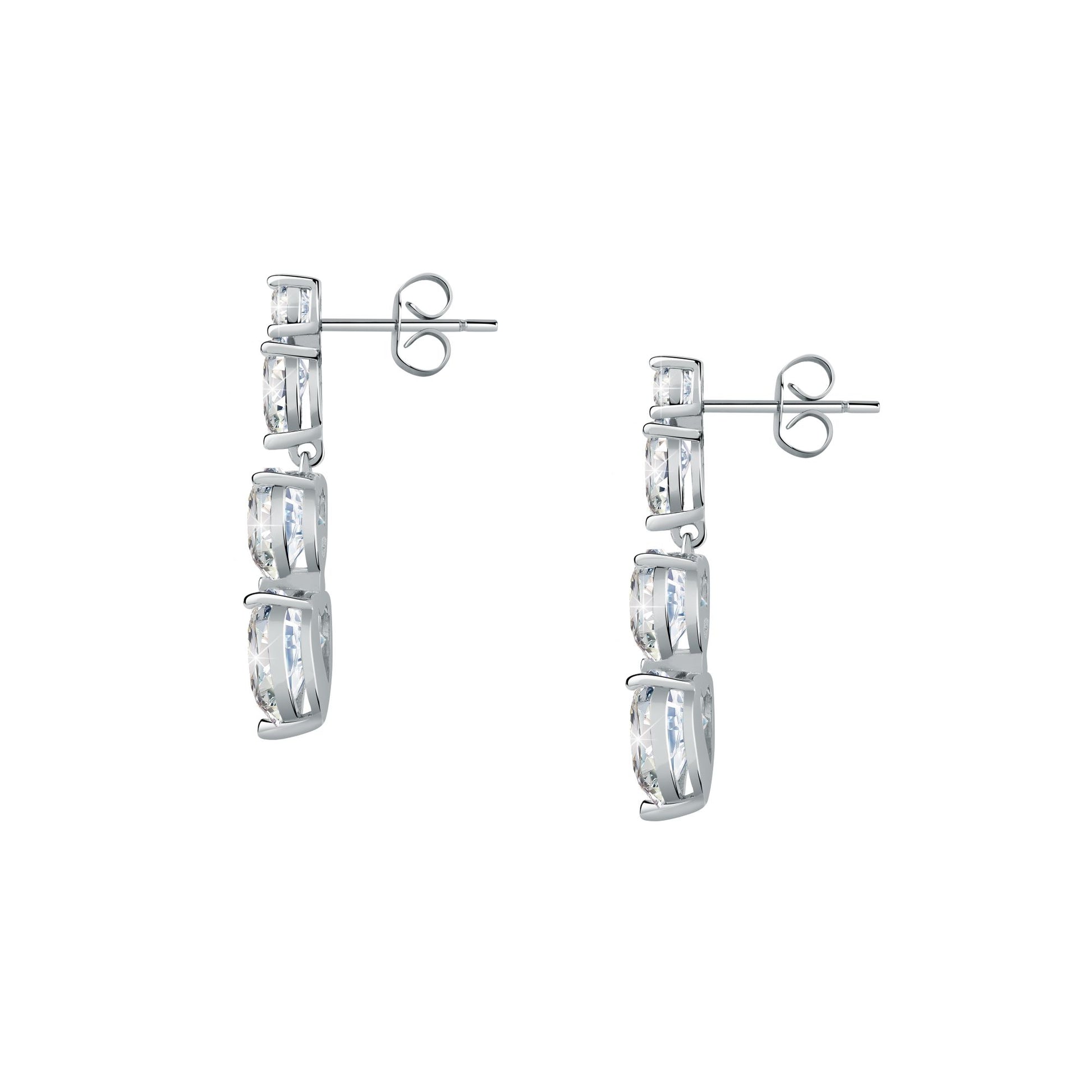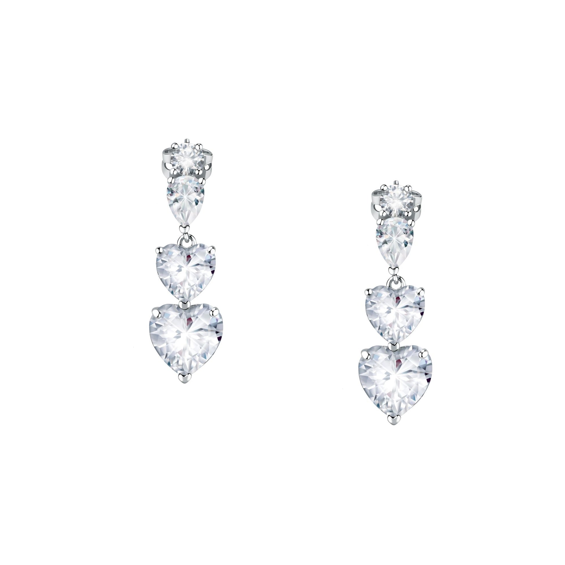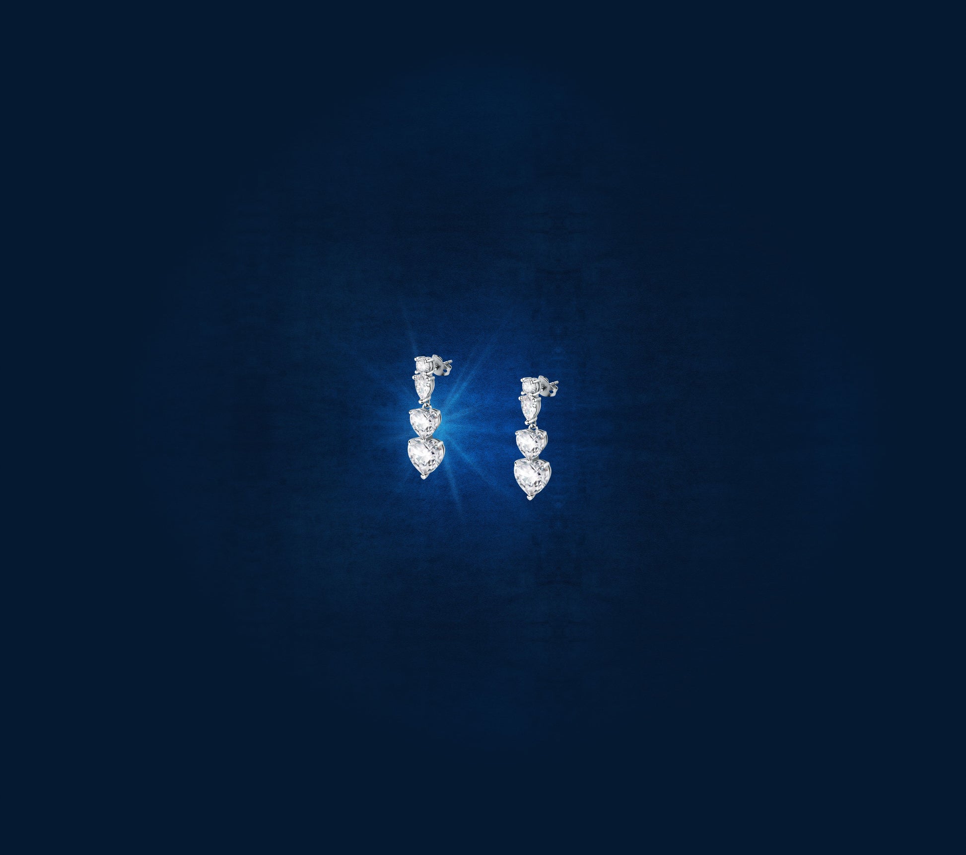 Presenting the Diamond Heart White Tri-stone Earrings. Featuring glittering white heart stones set in silver, these earrings are perfect as a gift, or to complement an array of outfits.