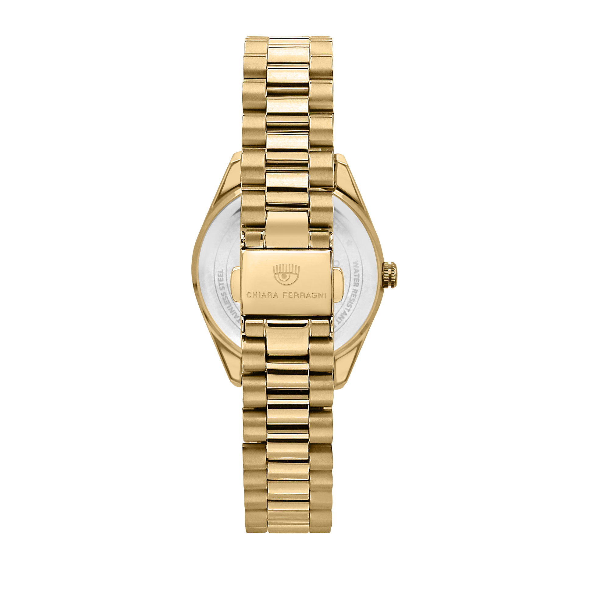 With a glitter embellished white dial and an all gold design, this watch is the perfect combination for a range of outfits. Sparkle with Chiara Ferragni!