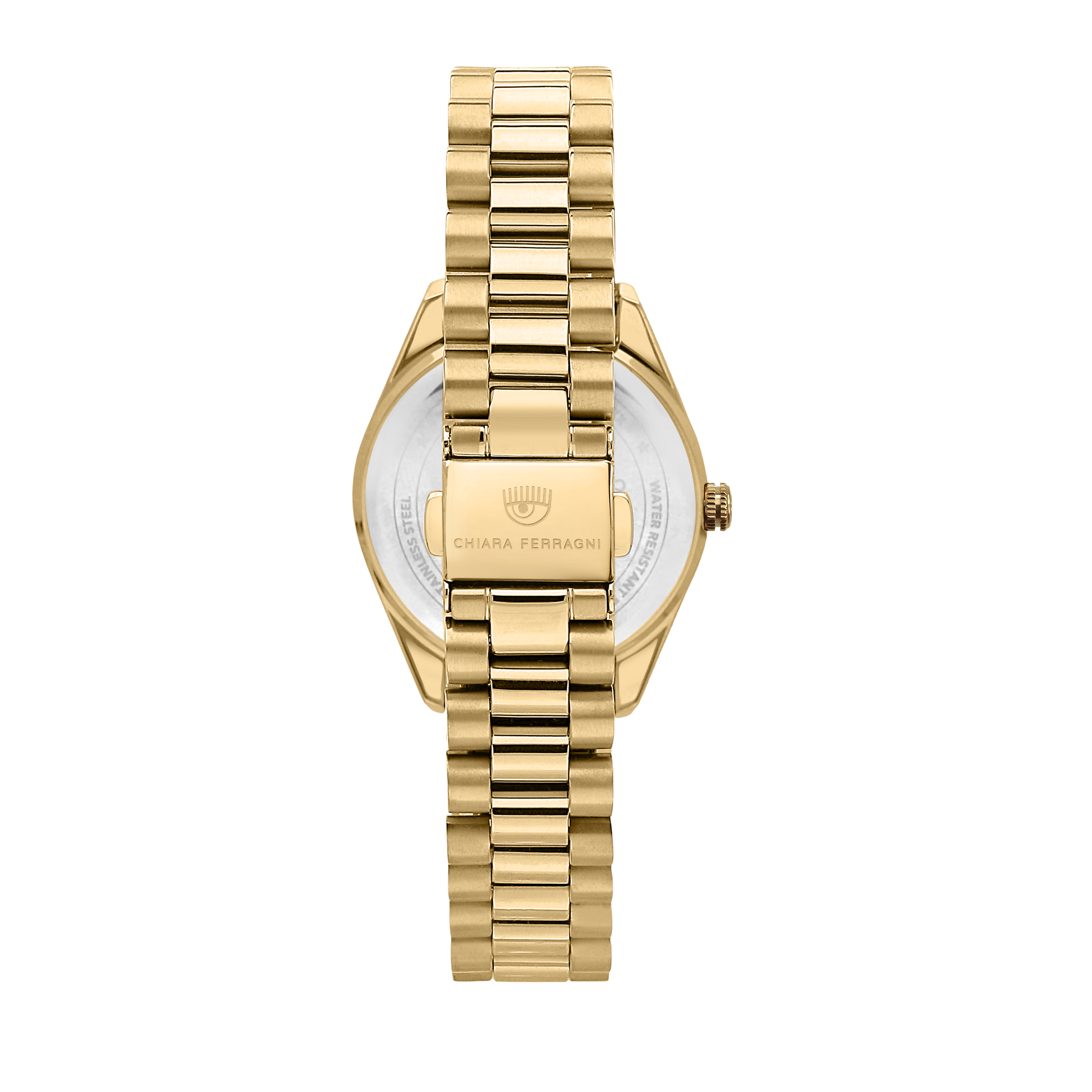 Chiara Ferragni presents the Everyday collection. Featuring a bold 34mm case set in all metal designs, embellished with zircon crystals and a sparkly finish, these watches embody the spirit of the Italian high fashion.