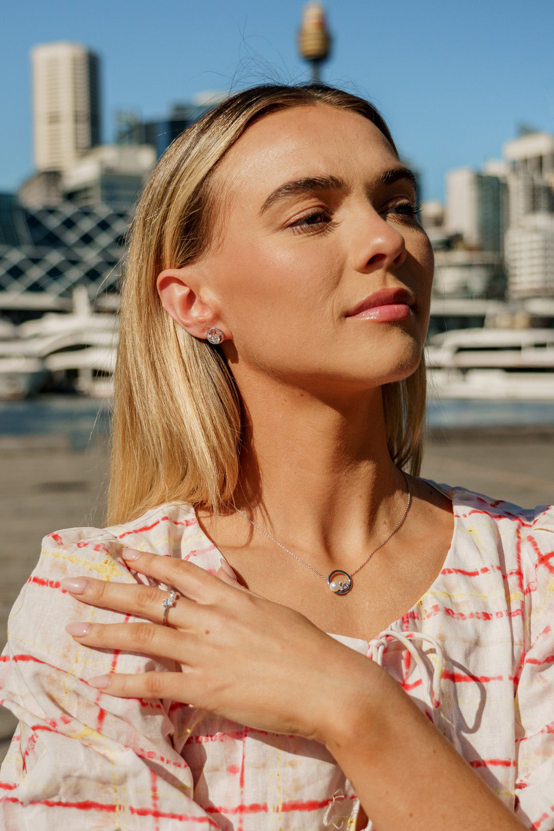 Toi et Moi, meaning "You and Me" in French, symbolises the deep connection between two individuals, making this lariat a meaningful accessory for expressing love and togetherness. This exquisite piece features a captivating design that elegantly combines oval and pear-shaped cubic zirconia set within a 16mm circle, creating a harmonious blend of natural beauty and sparkling brilliance.
