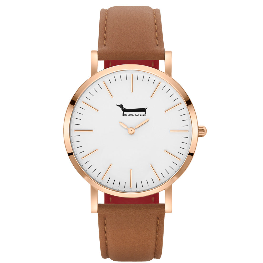 Doxie Women's Quartz Ella 40mm Rose Gold Case Watch with Tan Leather Strap analog Display and Leather Strap