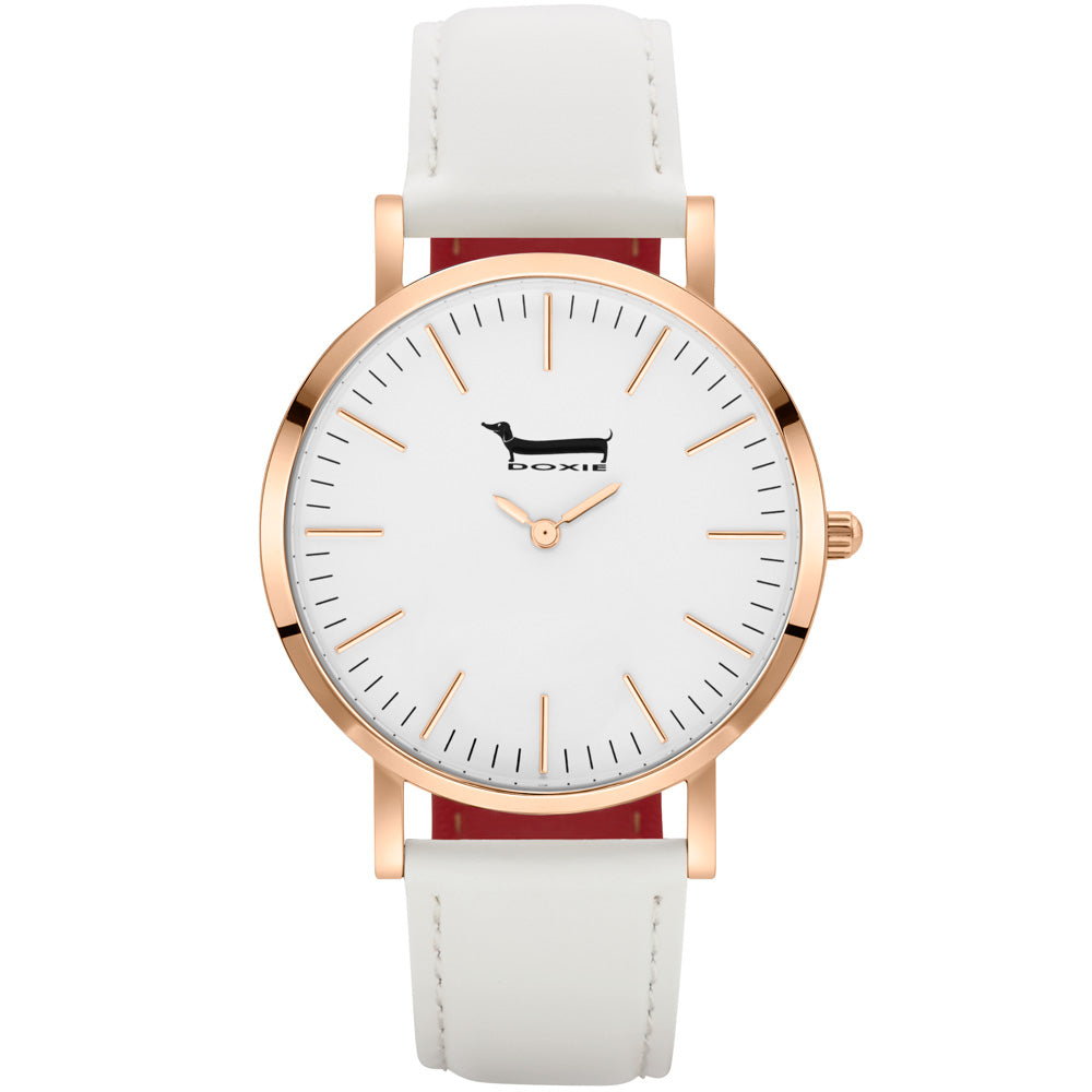 Doxie Women's Quartz Gemimah 40mm Rose Gold Case Watch with White Leather Strap analog Display and Leather Strap