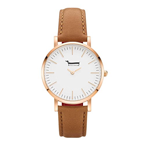 Doxie Women's Quartz Mini Ella 34mm Rose Gold Case Watch with Tan Leather Strap analog Display and Leather Strap