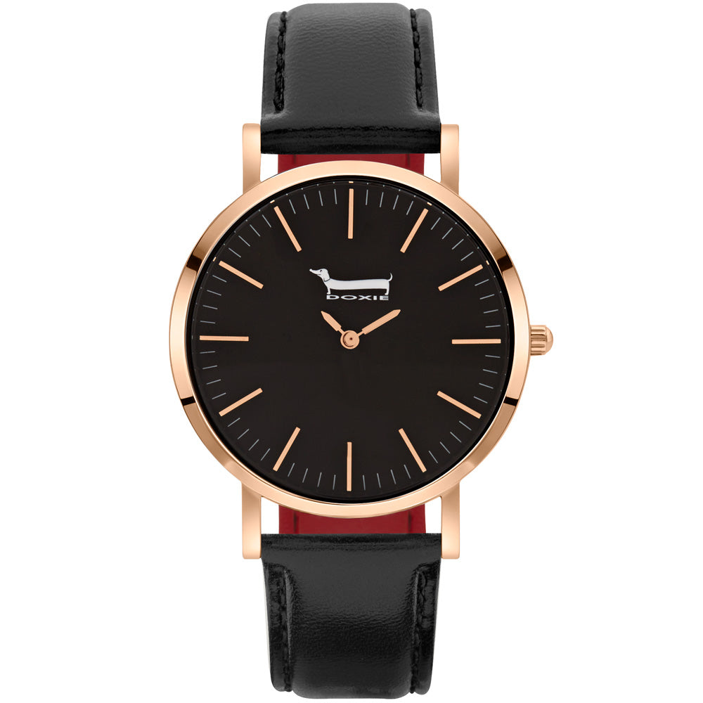 Doxie Women's Quartz Sophie 40mm Rose Gold Case Watch with Black Leather Strap analog Display and Leather Strap, DX0103