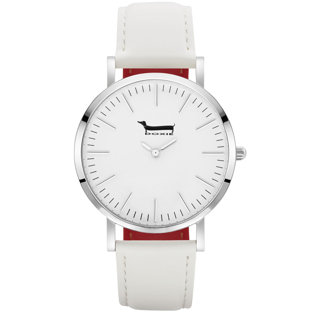 Doxie Women's Quartz Winston 40mm Silver Case Watch with White Leather Strap analog Display and Leather Strap