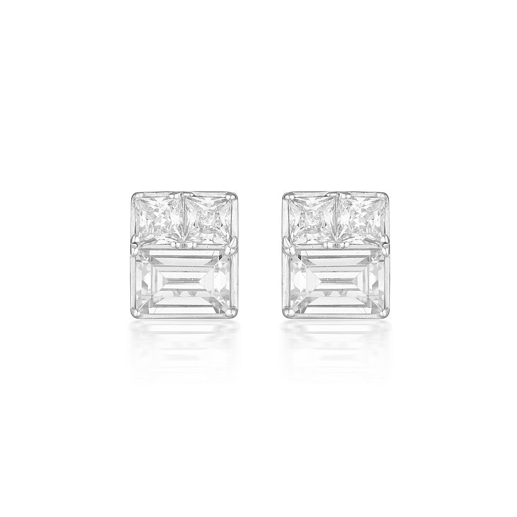 This Season sparkle with Georgini’s MOSAIC collection. An intricate collage of shapes, delicately arranged and designed to produce a collection that exudes lots of sparkle, glamorous style and femininity. Tiny princess and baguette perfectly cut stones have been delicately placed to capture every angle of light and create the backdrop for maximum sparkle and shine! The Elena Mosaic silver stud earring is the perfect stud for every occassion.