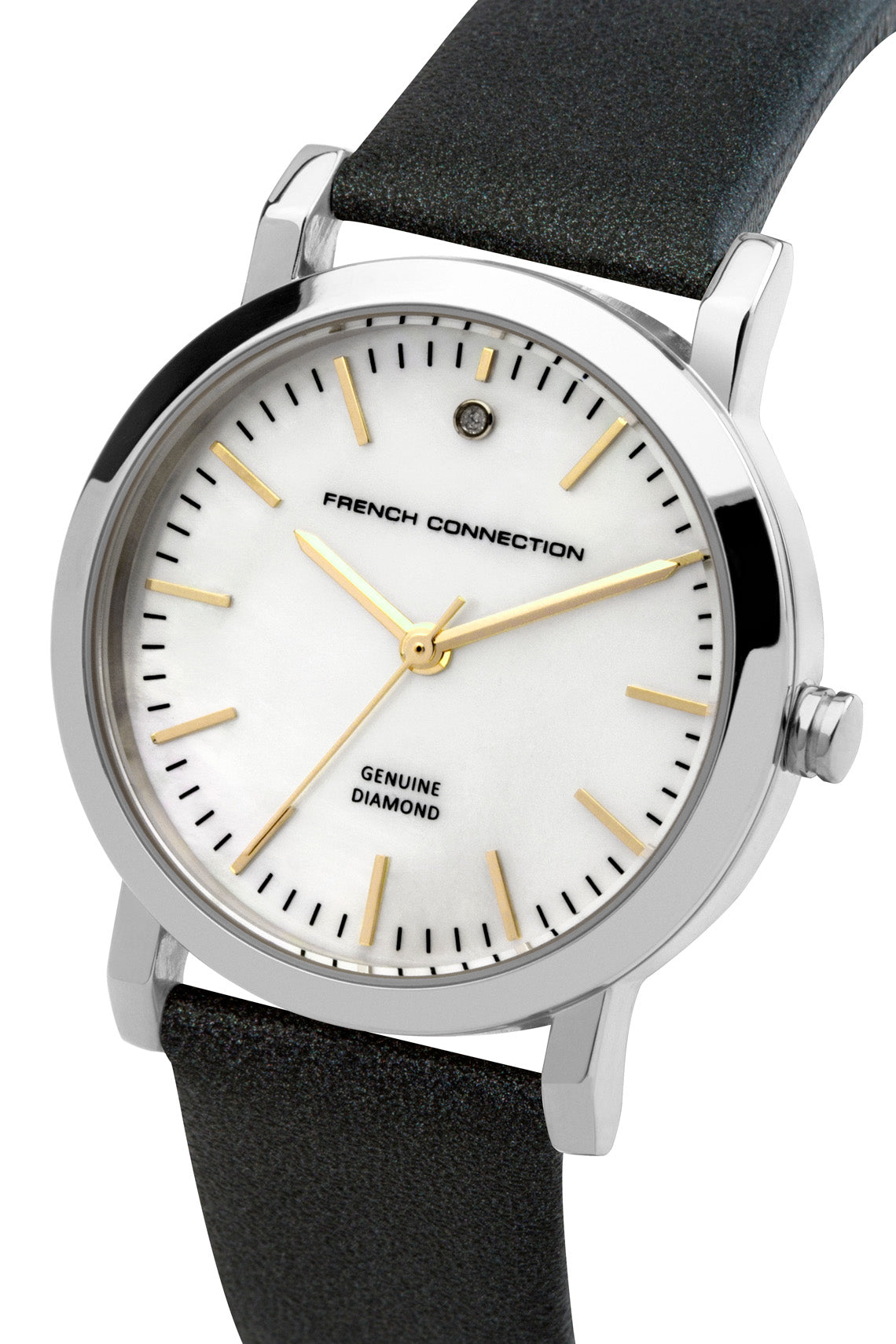 French Connection Catherine Diamond 34mm Mother of Pearl Dial Black Leather Strap Watch
