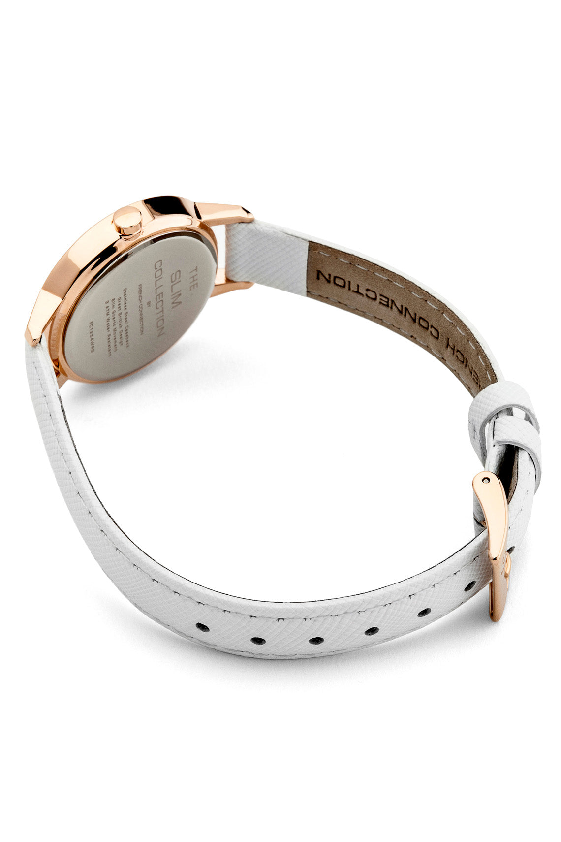 French Connection Mulberrt 30mm White Dial White Saffiano Leather Strap Watch