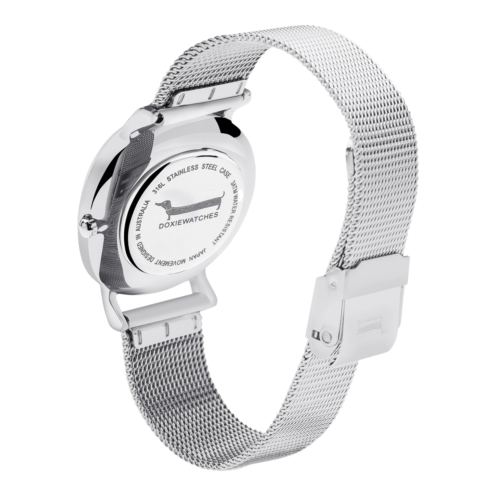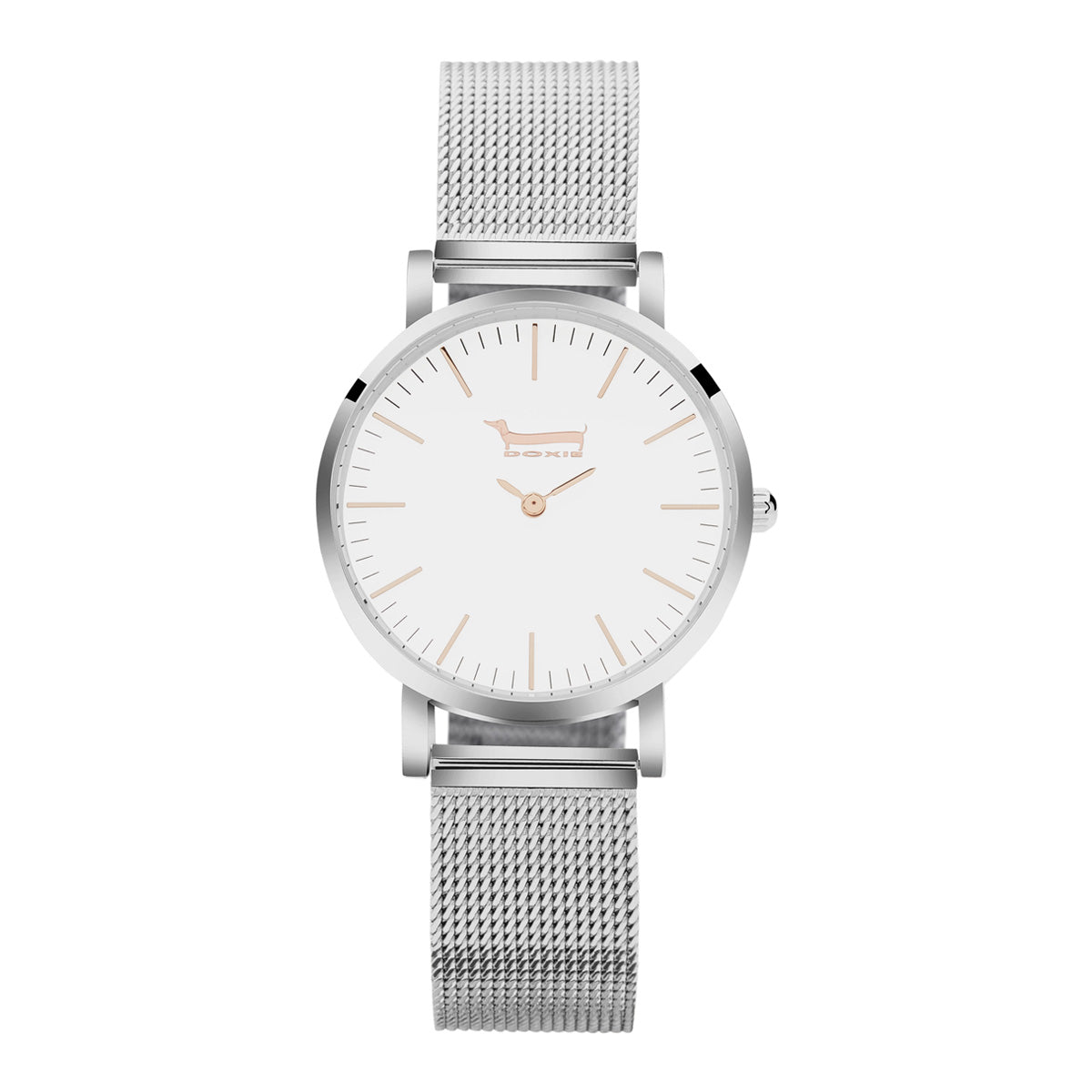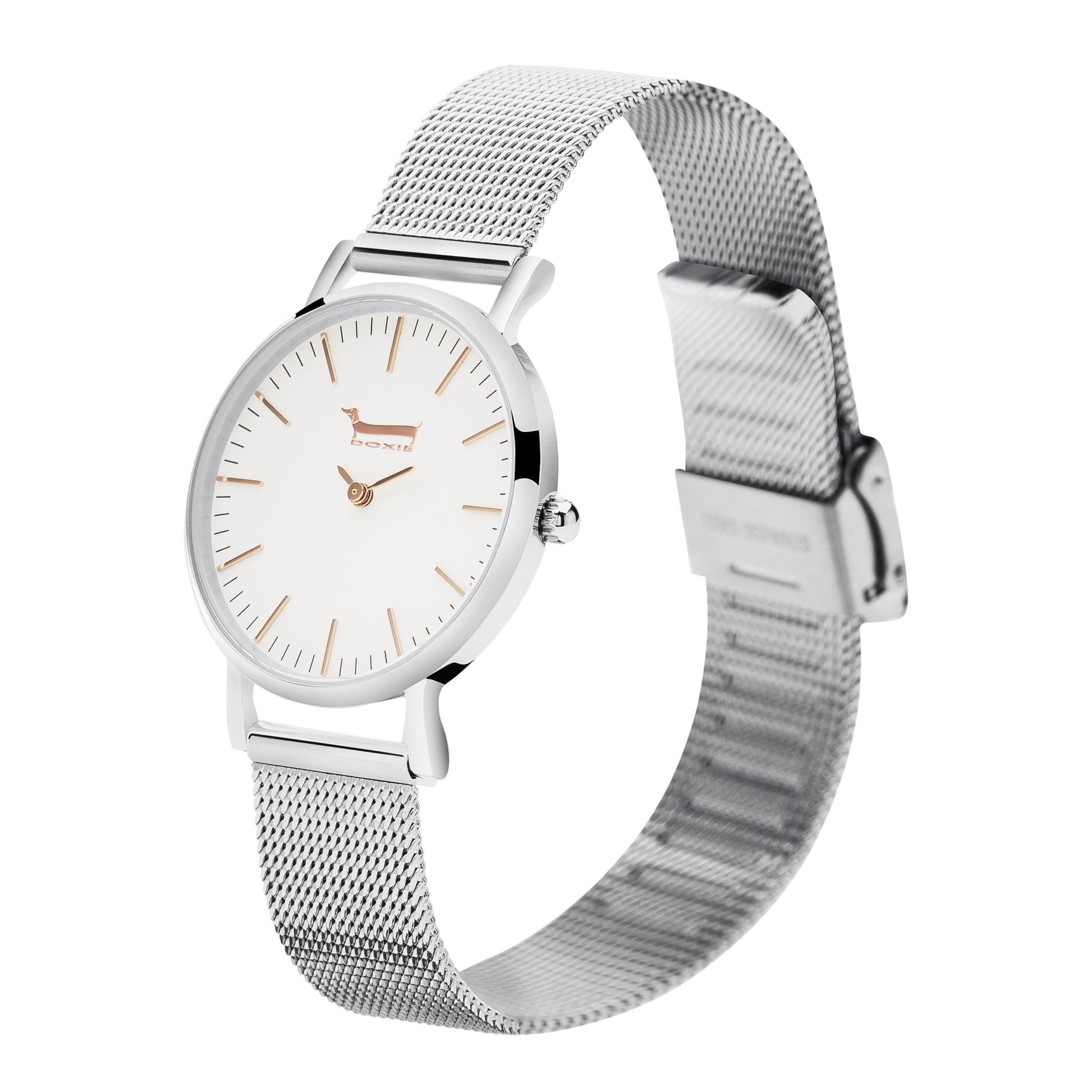 The story of this watch design began with our customer Denise Beard from Seattle in the United States. Denise requested to have a mixed metal, silver and rose gold Doxie watch, and we custom created it for her. We loved the watch so much that we decided to add it to the range and call it Frieda & Dori, in honour of Denise's dachshunds.