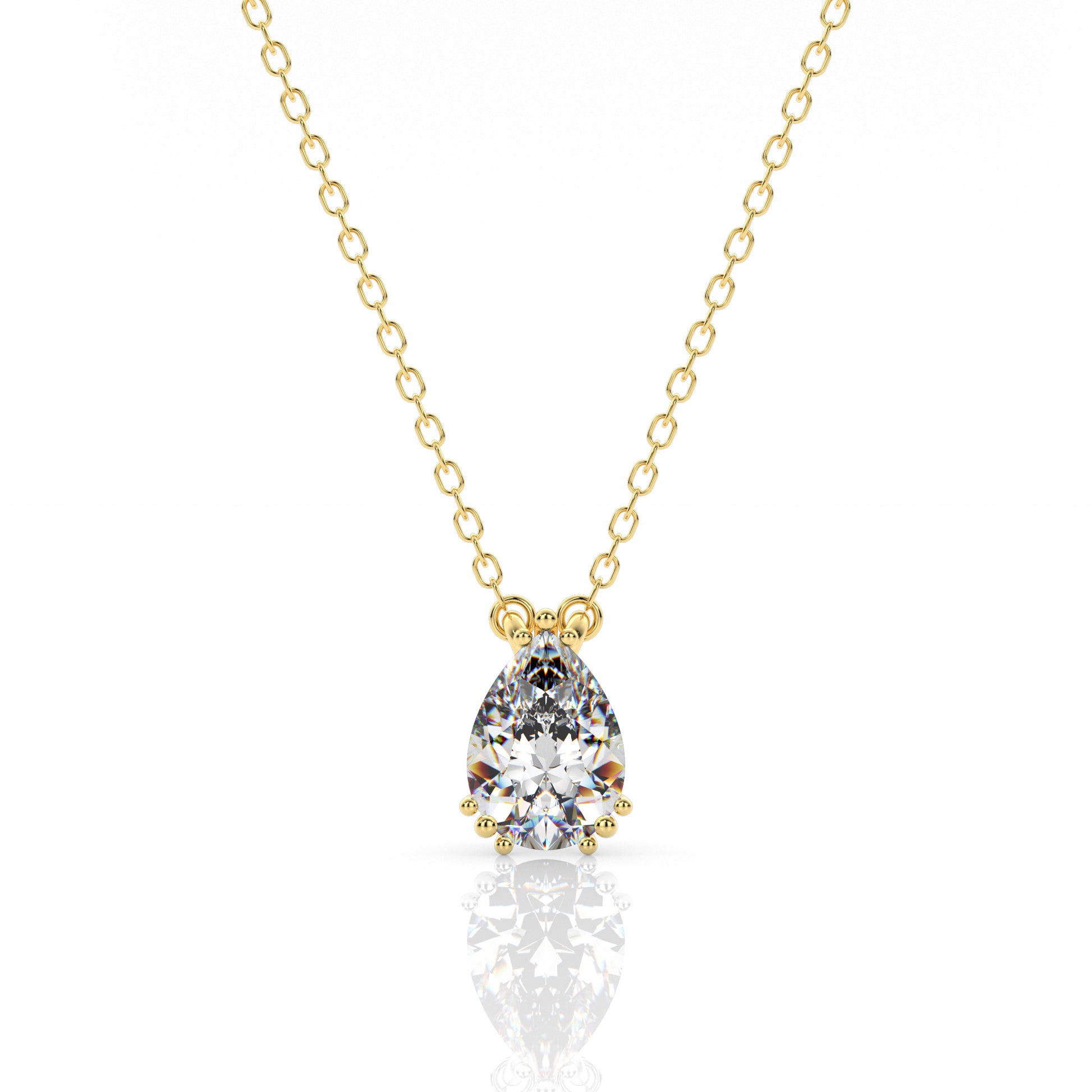 At its centre is a beautifully faceted 7mm high by 5mm wide pear-cut cubic zirconia, secured with a triple prong and rail setting for added strength. Tucked beneath the main stone lies a refined hidden halo of 10 micro-set stones, offering subtle brilliance and intricate detail. The pendant also features a smooth, flat back for comfortable all-day wear.