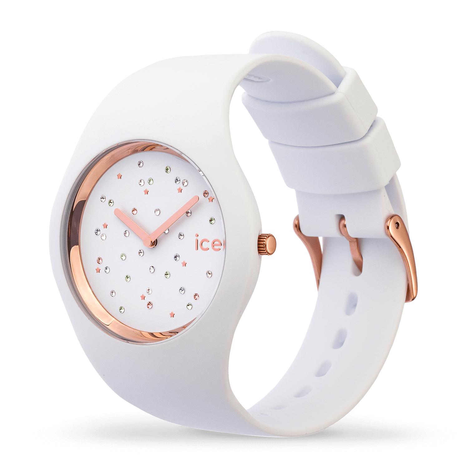 Want to shine without overdoing it? Then the ICE cosmos STAR WHITE is the watch for you! With a white dial and 34 subtle rose gold accents and silver crystals, this watch embodies ultimate elegance. With its immaculate white strap and rose gold details, it is chic and easy to wear, day and night.