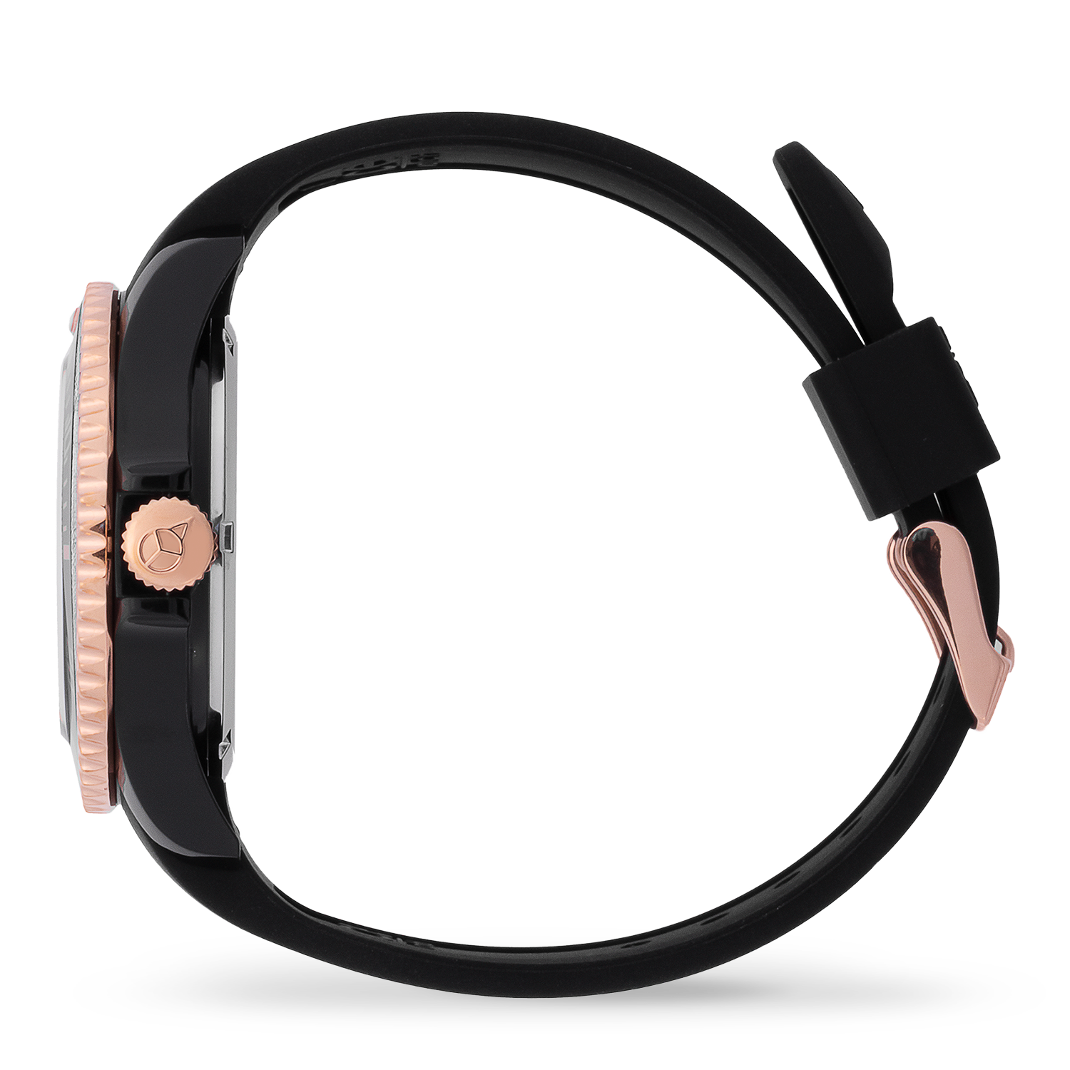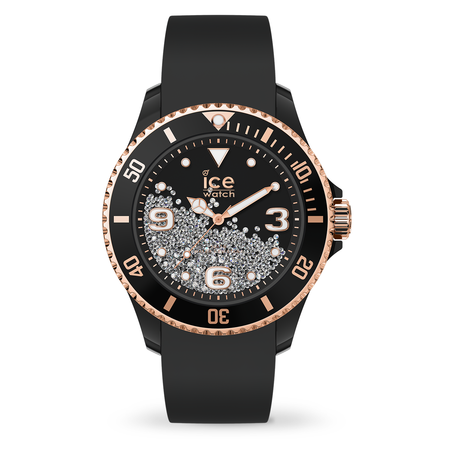 With the launch of the ICE crystal collection, chic sophistication blends impeccably with flagship Ice-Watch design. This medium-sized black watch features a transparent dial with rose gold details, encasing a cascade of 400 crystals that spin and swirl freely with your every movement. Mesmerising, mysterious and incredibly elegant, the ICE crystal watch combines steel details with a silicon bracelet for a wonderfully stylish look!