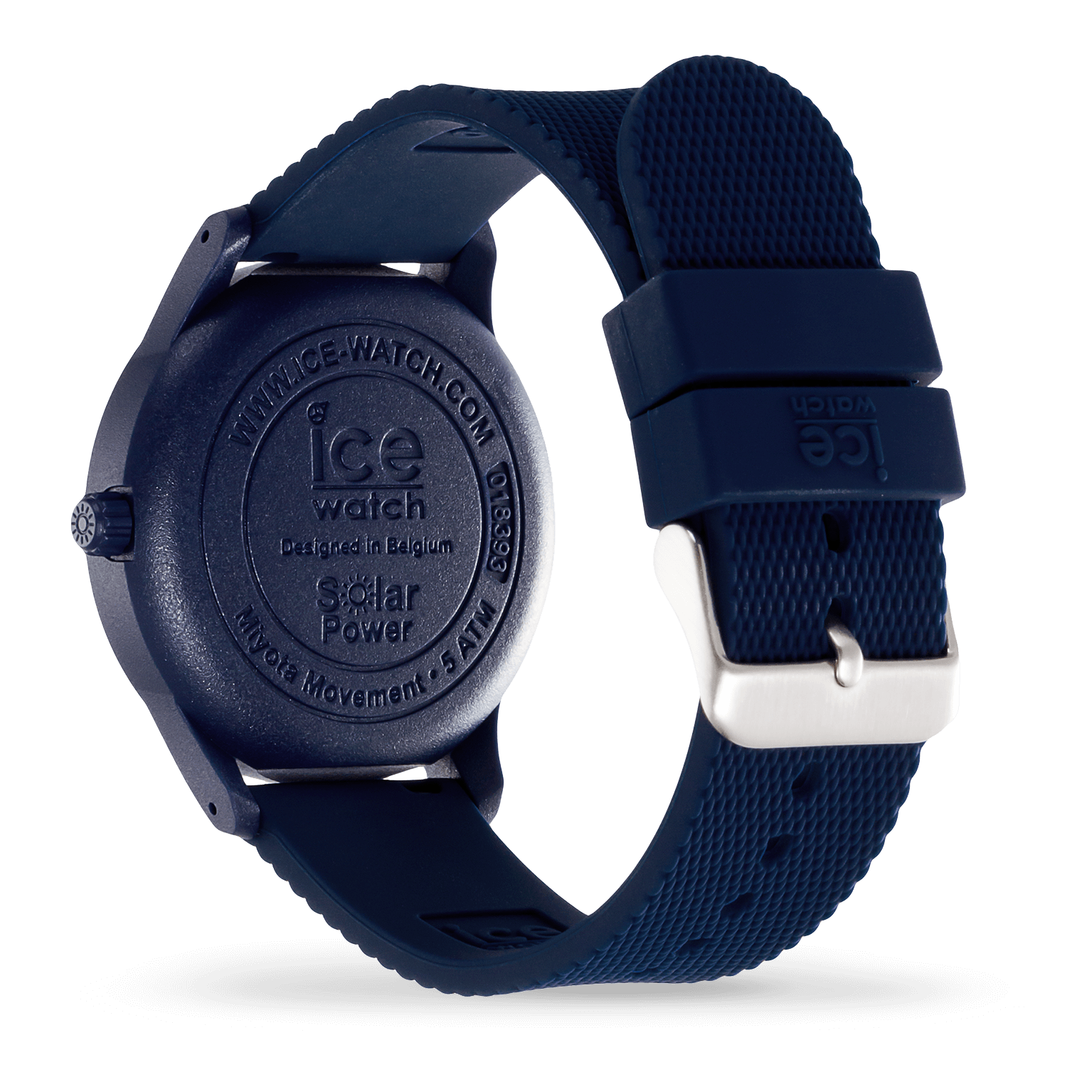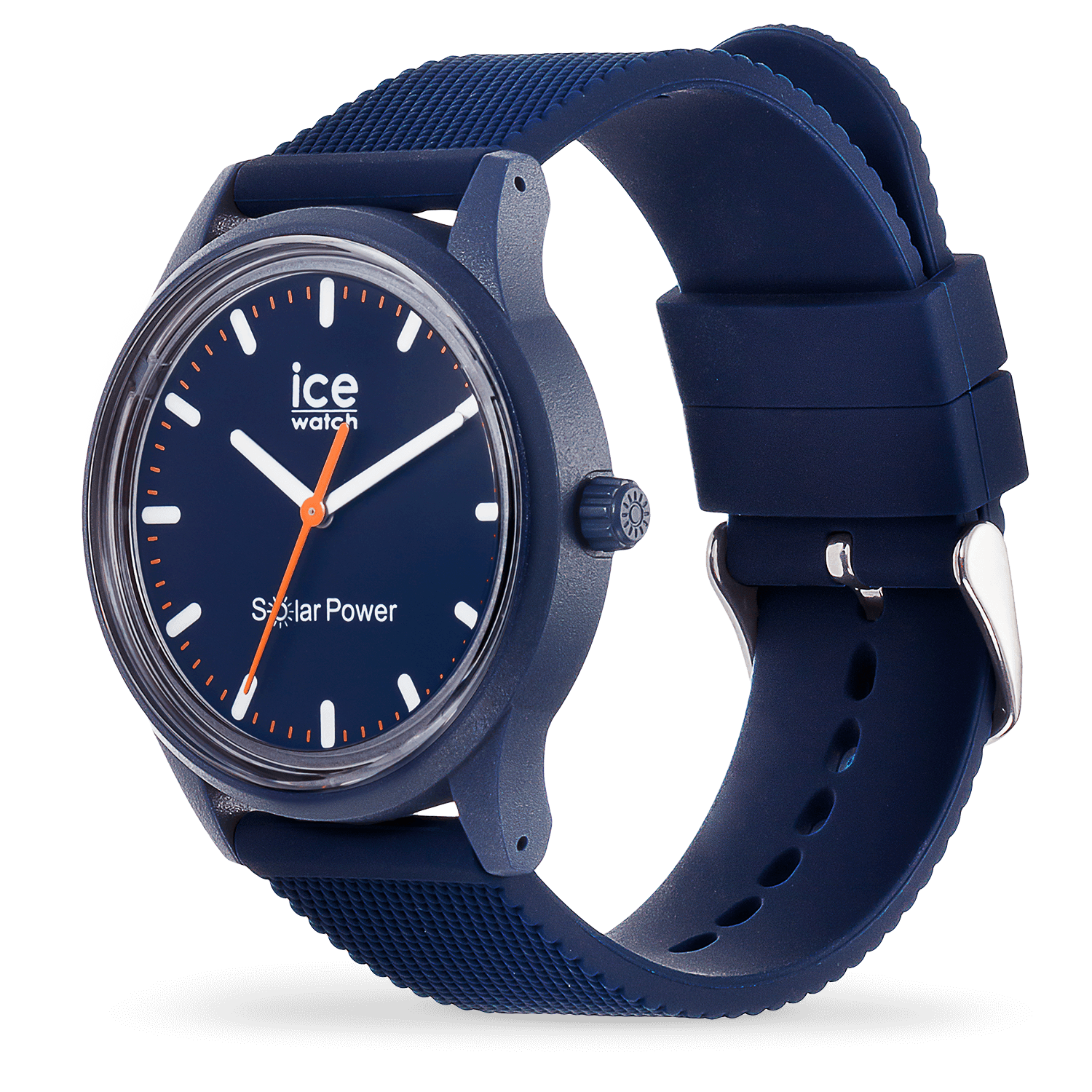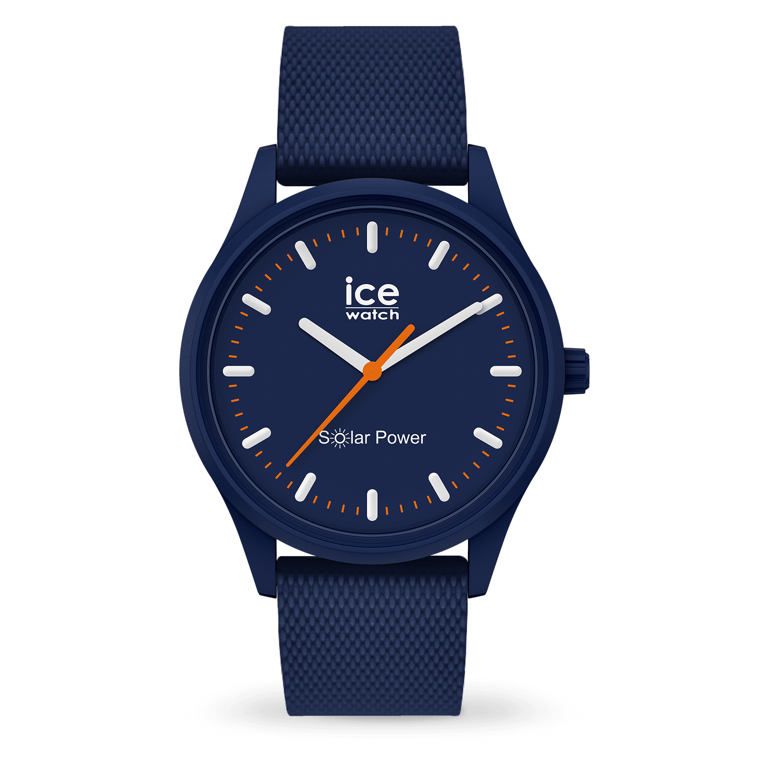 Go green and do your bit for the planet with the new ICE solar power polar watch. The deep blue solar-powered timepiece is ultra slim and feather light. Made from super soft silicone and featuring a sleek dial, this unisex model is the ultimate minimalist statement. Simply expose it to natural or artificial light to charge, then sit back and enjoy as it lasts and lasts! It comes in a reusable felt pouch made from recycled plastic bottles.
