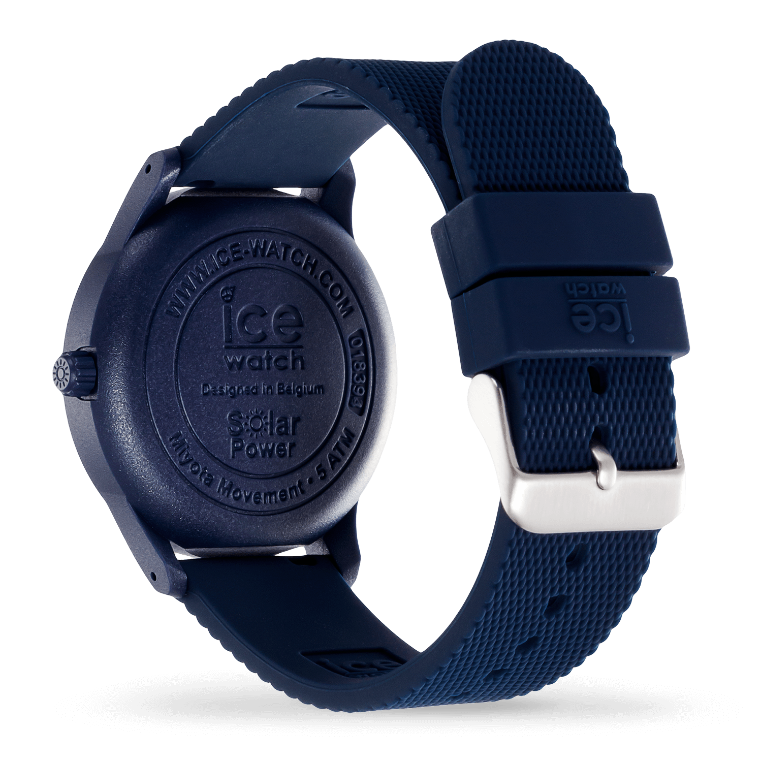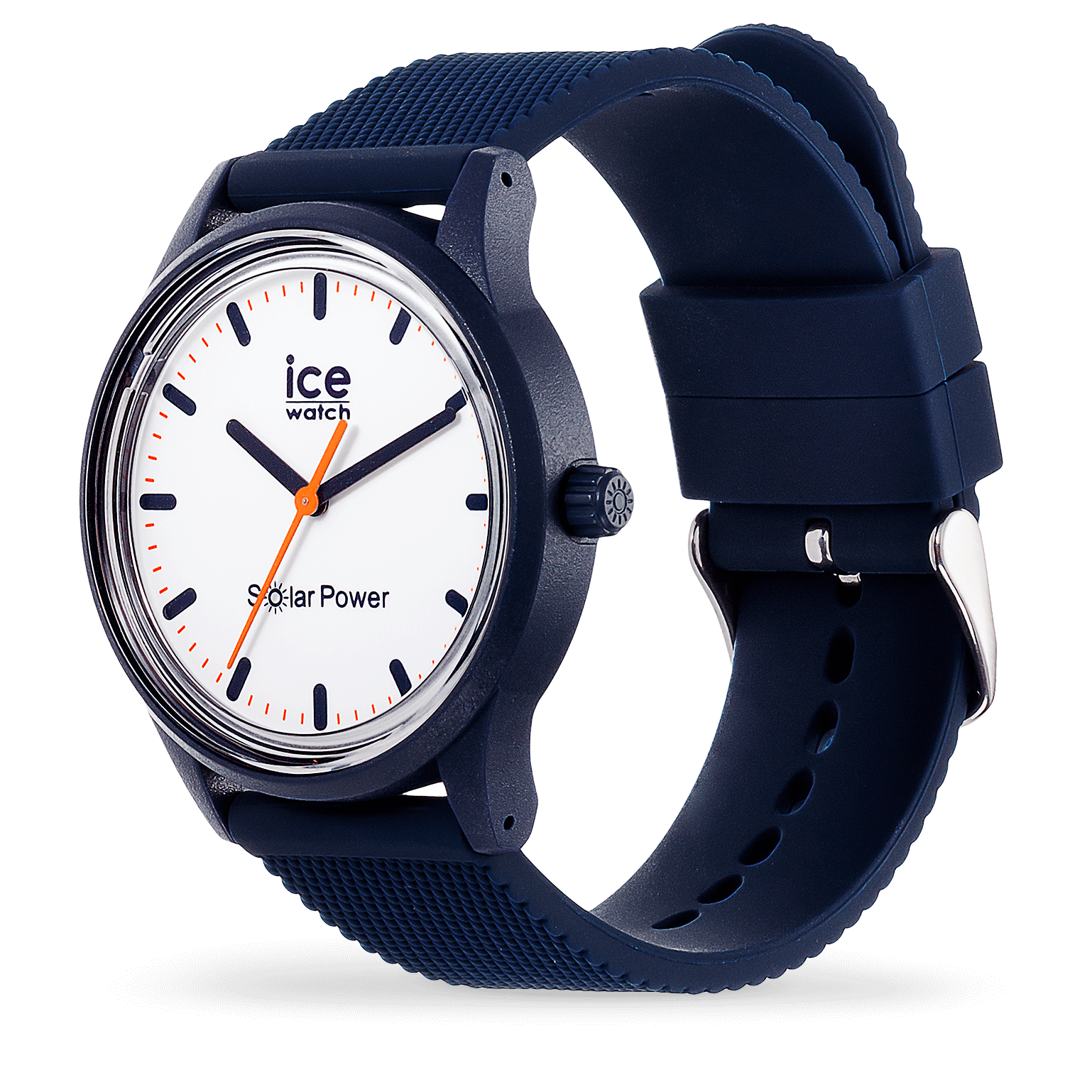 Go green and do your bit for the planet with the new ICE solar power polar watch. The deep blue solar-powered timepiece is ultra slim and feather light. Made from super soft silicone and featuring a sleek dial, this unisex model is the ultimate minimalist statement. Simply expose it to natural or artificial light to charge, then sit back and enjoy as it lasts and lasts! It comes in a reusable felt pouch made from recycled plastic bottles.