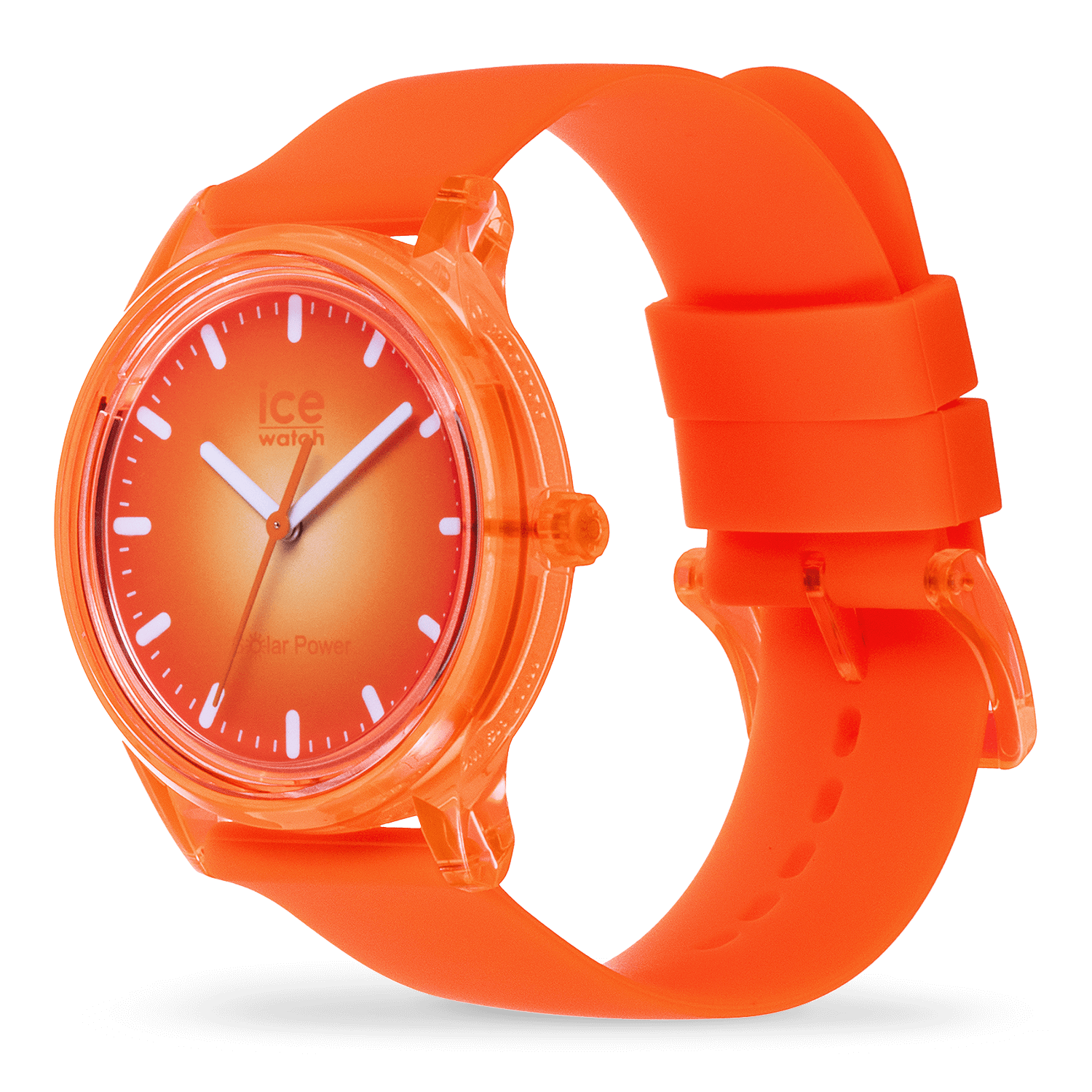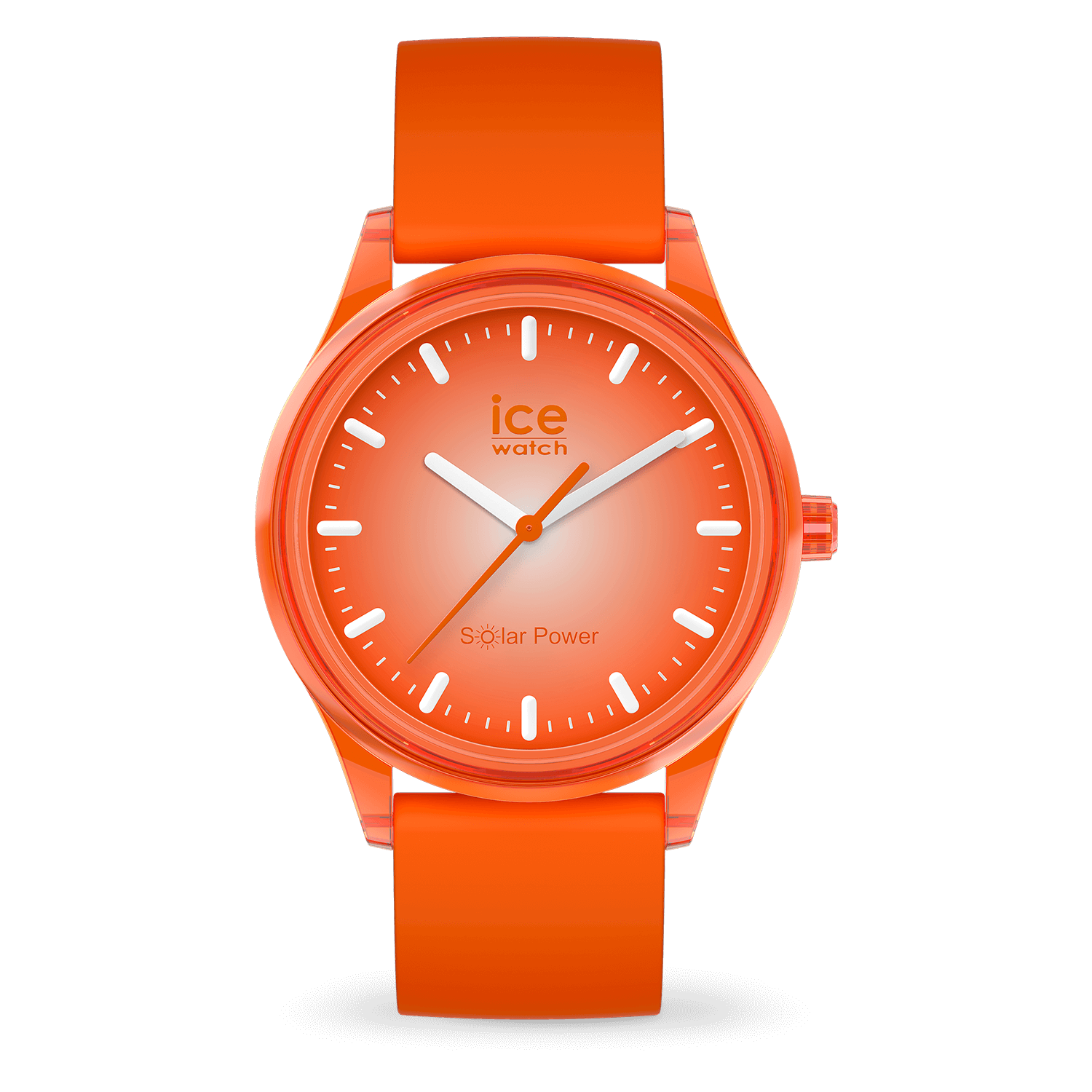Go green and do your bit for the planet with the new ICE solar power sunlight watch. The fluorescent orange solar-powered timepiece is ultra slim and feather light. Made from super soft silicone and featuring a dial with colour gradient, this unisex model is the ultimate minimalist statement. Simply expose it to natural or artificial light to charge, then sit back and enjoy as it lasts and lasts! It comes in a reusable felt pouch made from recycled plastic bottles.