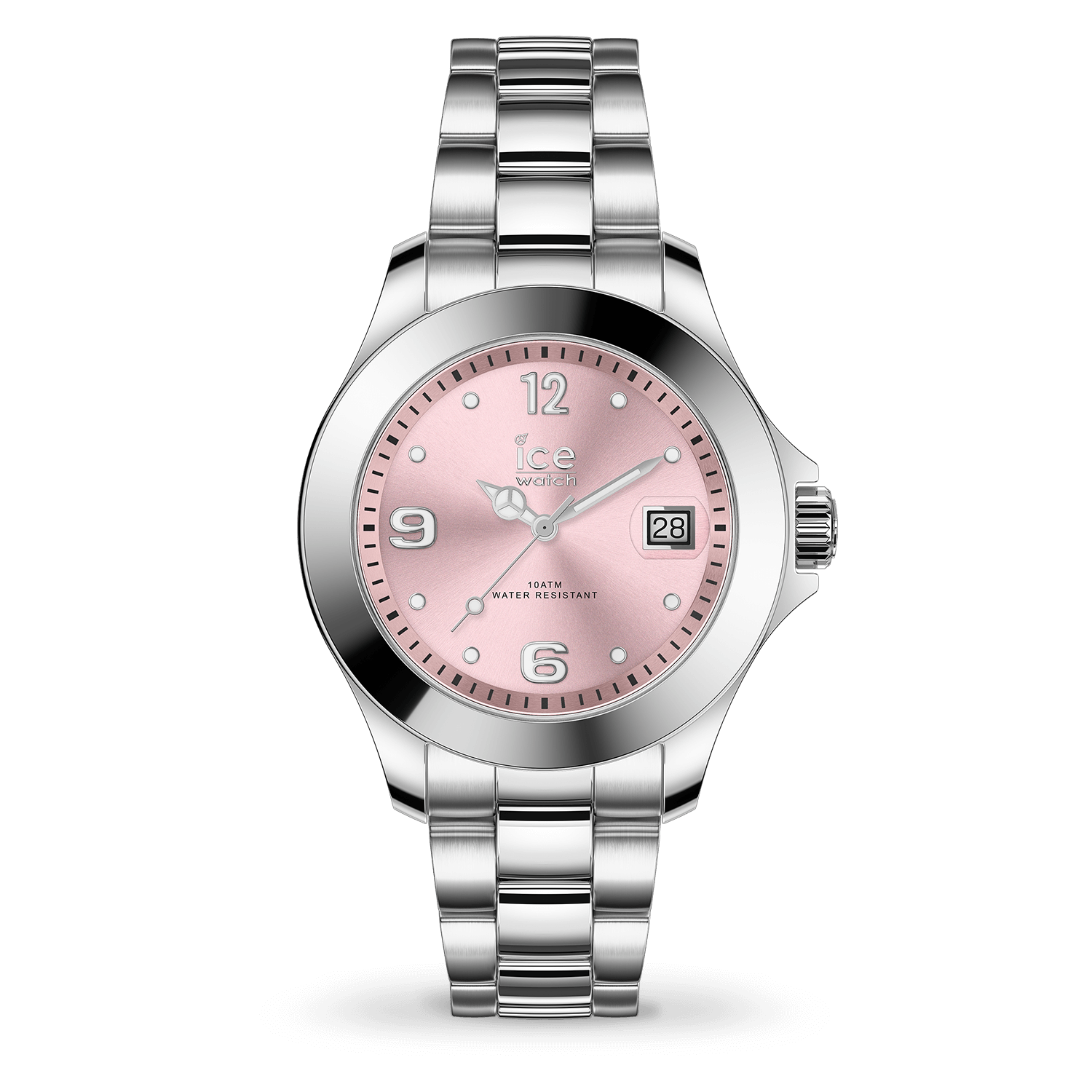 Bright and sturdy, this silver stainless steel watch will provide a peculiar style to your everyday outfits. With its pale pink background with white details and crystals as an index finger and silver-plated metal mesh strap, it will enhance your wrist with a feminine and modern touch.