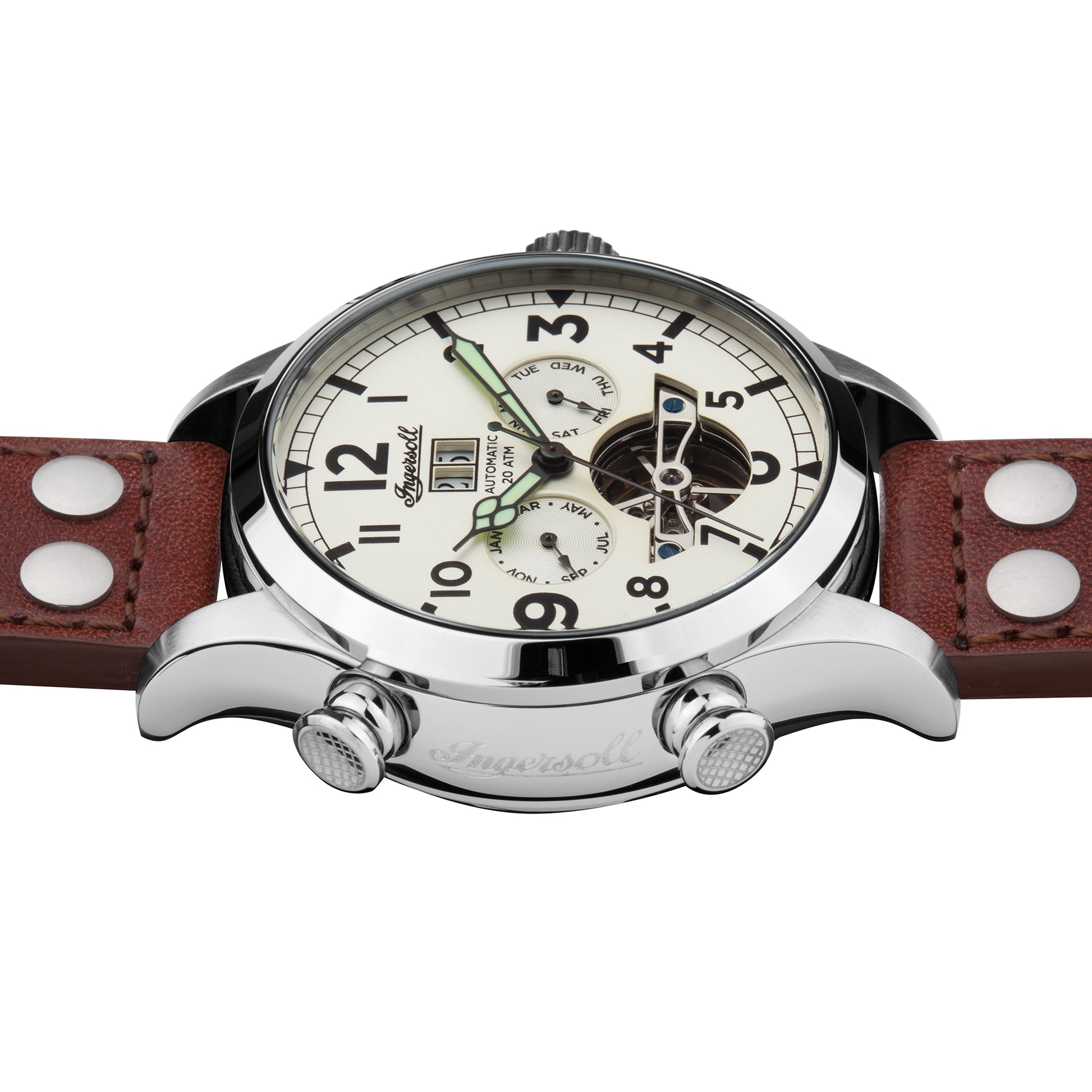 The white dial of the Armstrong I02101 combines modern design with classic watch making. The hands are coated in luminova for a glow in the dark effect.
