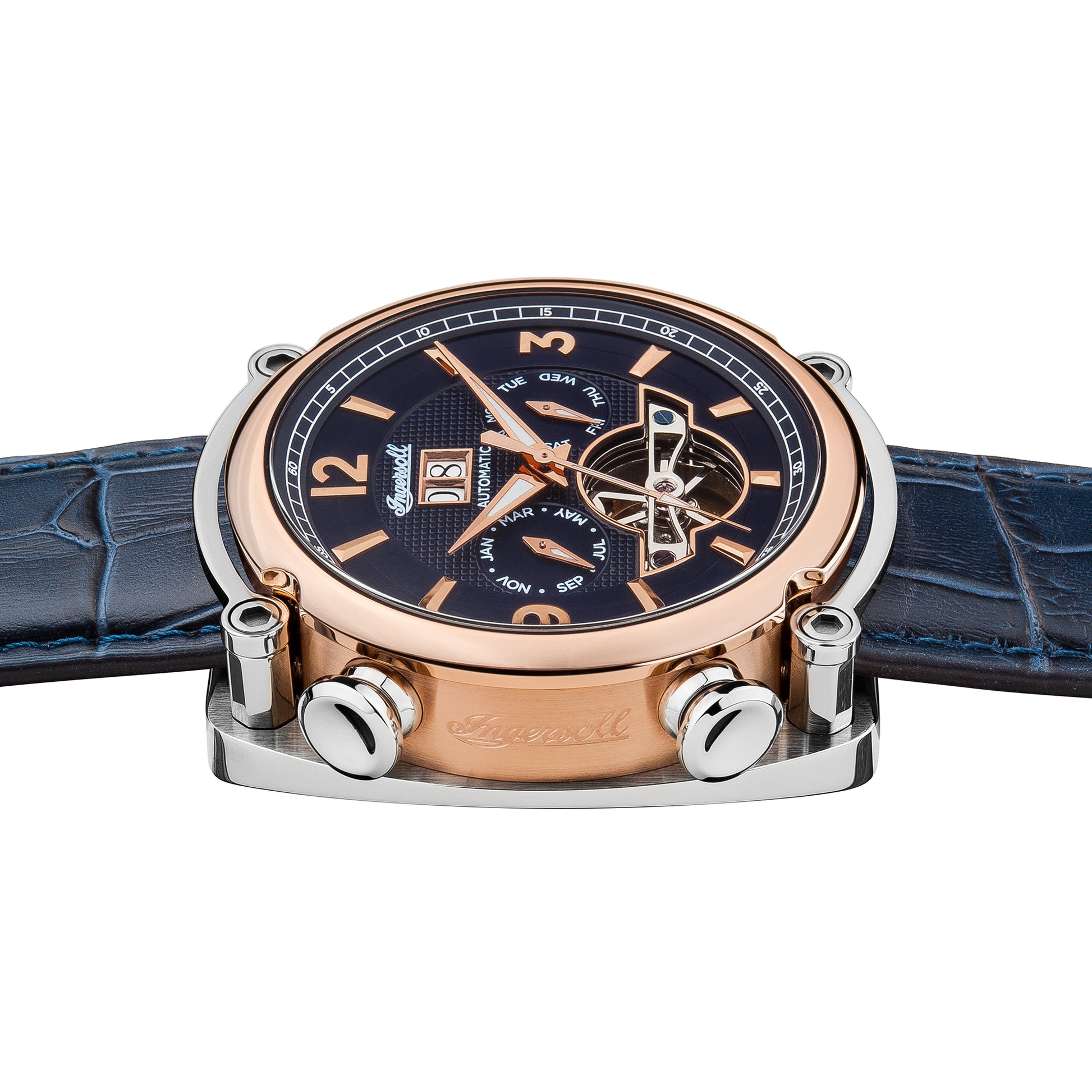 Crafted in the true spirit of Ingersoll, the royal blue Michigan I01101B houses a automatic powered movement and features a design that represents Ingersoll’s legacy for precision timepieces.