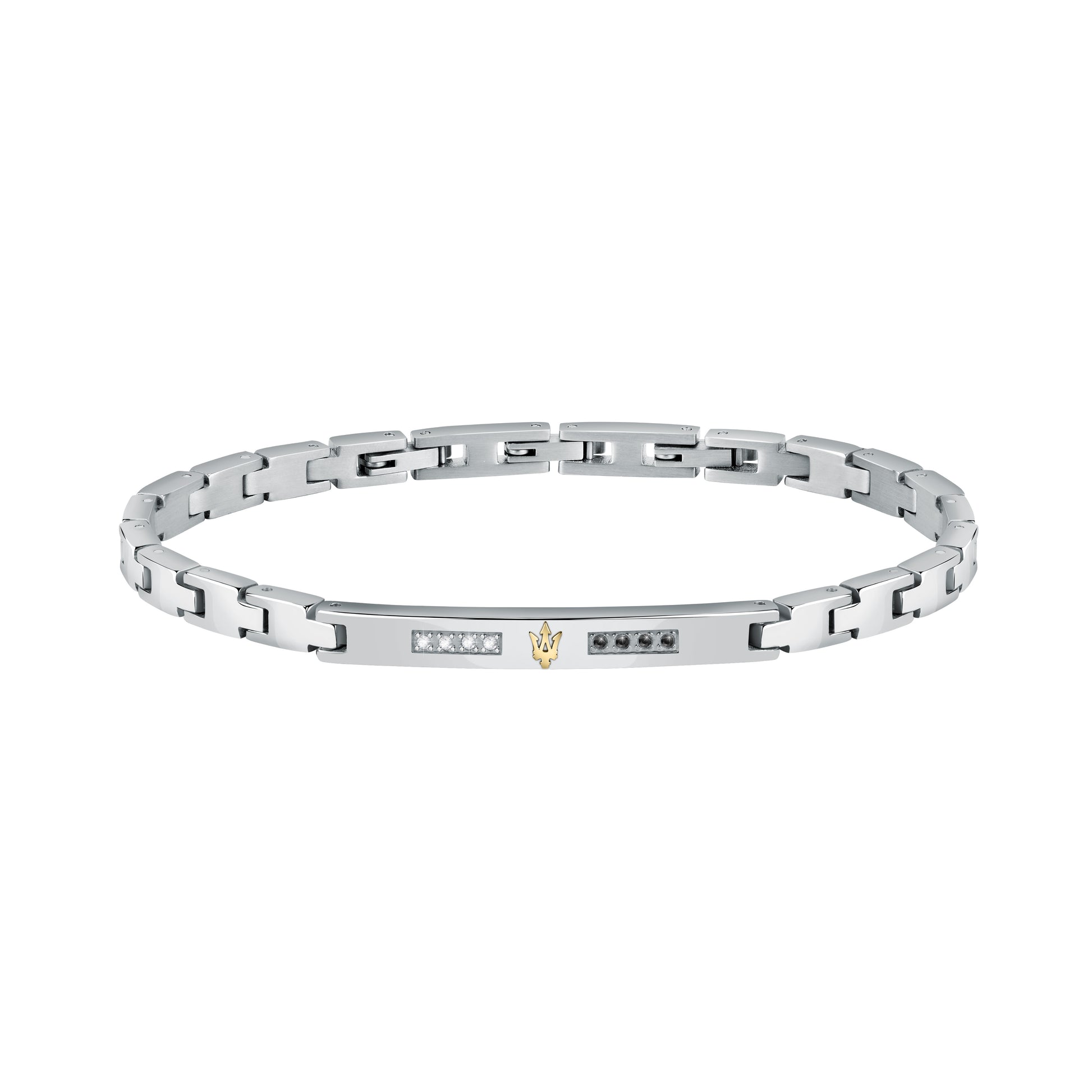 The Maserati Bracelet, a fusion of elegance and automotive prestige. Crafted from high-quality stainless steel, this bracelet exudes durability and refinement. With its sleek design and iconic Maserati branding, it's the perfect accessory for enthusiasts and fashion-forward individuals alike.