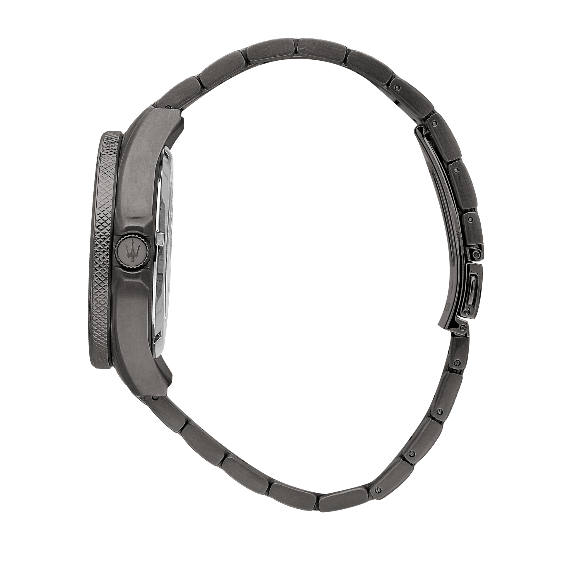 Presenting the Maserati Sfida 44mm Black Watch. The Maserati Sfida Collection consists of watches with sporty elegance, characterized by a structured design, steel case (44mm) with rotating or tachymeter bezel, knurling finish on one side. The sunray effect or modern dégradé dials offer elegance and rigour, distinctive features of Maserati maison. The new models from Sfida collection are based on Maserati's values and sporting heritage. Detailed watch constructions and colour nuances enhance the super luxury brand DNA.