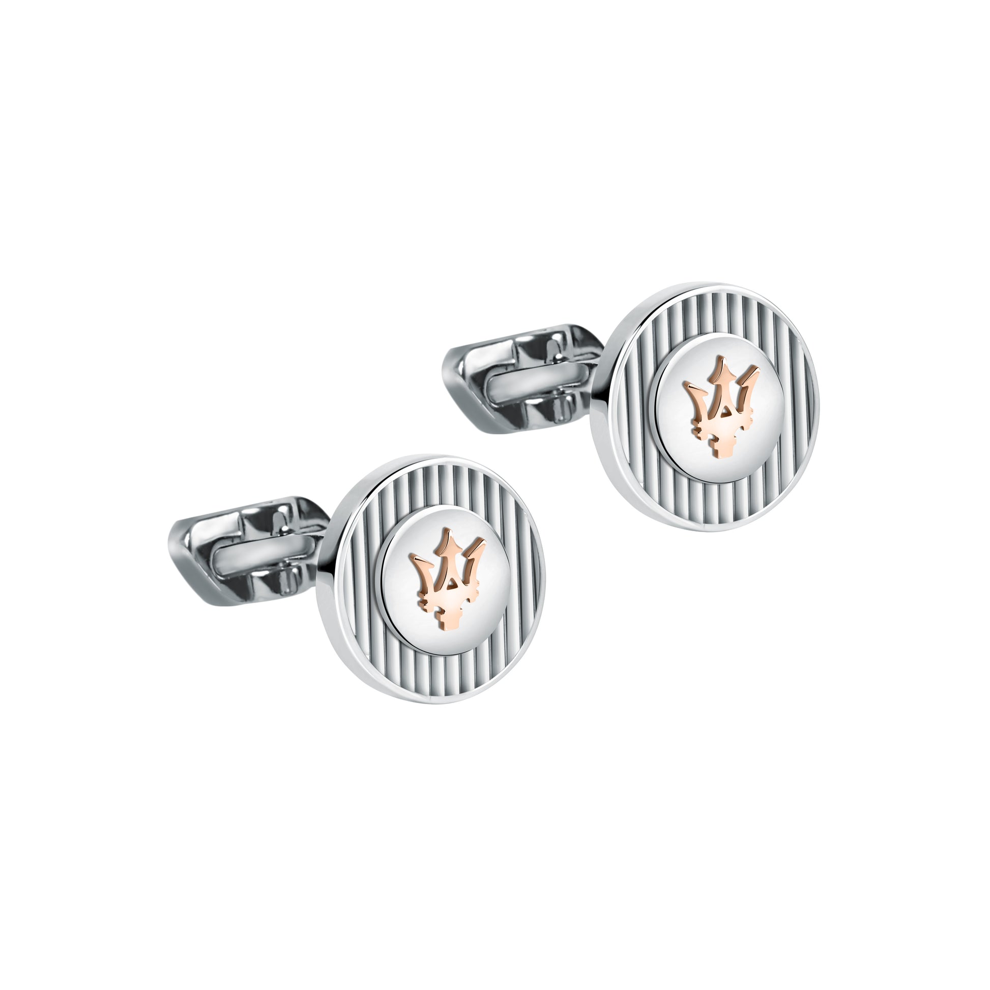 Introducing the polished stainless steel Cufflinks, exuding timeless elegance and durability. Inspired by the prestigious Maserati brand, these cufflinks capture the essence of automotive sophistication, adding a touch of refined style to any formal attire.