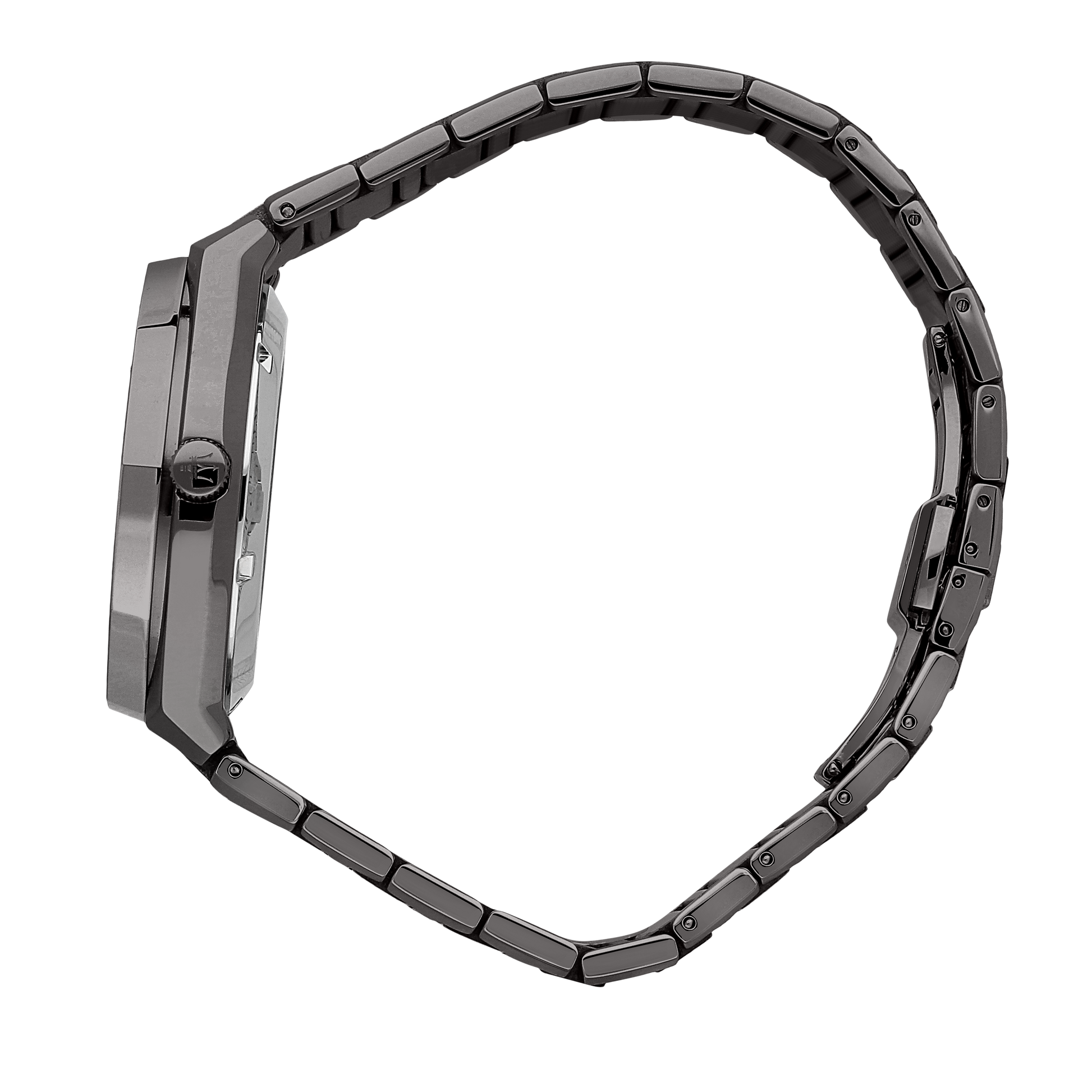 Presenting the Maserati Stile Gunmetal Watch. Welcome to the Maserati Stile Collection: watches that take up the mechanics, construction and stylistic codes of the iconic sporting watchmaking timepieces. The decisive lines, the distinctive decagonal bezel and the slim case are combined with details that strongly identify the sporting world such as: pump pushers, screw-down crown, multi-level dial, applied luminescent indexes, luminescent hands and a buckle with a personalised butterfly clasp featuring the applied Trident.- Materials: Stainless steel, Gun Metal PVD