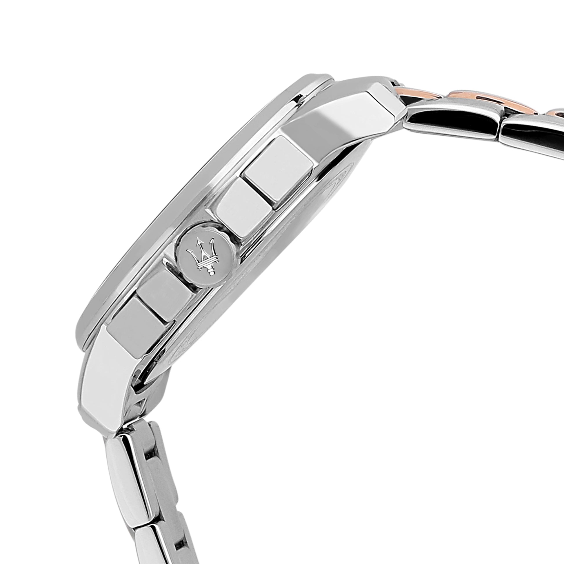 A sporty mood and renovated design for the chronographs of the Successo Collection sets them a class apart. Presenting the Maserati Successo 44mm Navy Blue Chronograph, a sports watch for the elite. A sports collection and in step with the times. Bracelets with simple lines combine with dials with complex shapes, which elegantly enrich the models of this collection. The sturdy steel case encloses dials with bright and contrasting details. The dials, with refined colours, are perfectly matched with steel bracelets or stainless steel straps, which alternate in models and shapes. The counters give the models of the Successo Collection a decidedly sporty chic look. Another distinctive detail of all the watches in the collection are the luminous indexes and hands that enrich the dials with light and give an extra touch of sportiness.