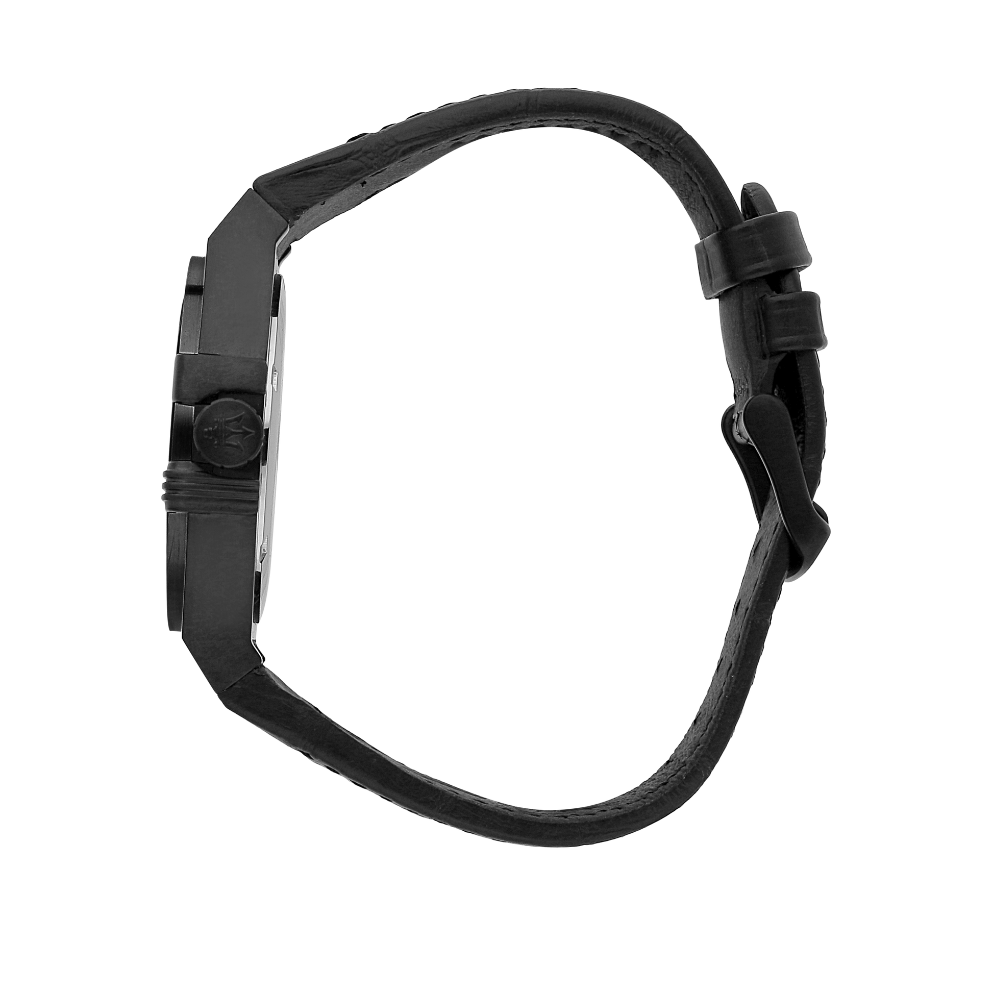 Maserati's best selling watch is this automatic Potenza timepiece which features a bold rose gold case, smooth black leather strap and skeleton dial which shows off the intricate detailing of the automatic movement with the iconic Maserati logo.The watches from the Potenza collection feature an innovative design, characterised by clean lines which interpret the stylistic features of the Maserati tradition in an extremely modern fashion. The large Trident logo at the centre of the dial combines with the shapes of the bezel, giving the case a dynamic look.