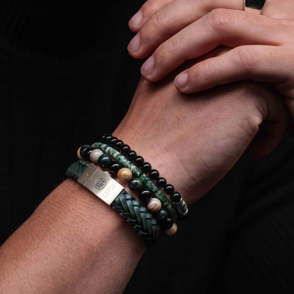 Gemstone bead bracelet, handmade from 6mm Onyx natural stone beads with a stainless steel clasp. The Rebel & Rose jewelry is easy to combine with other silver, leather or bead bracelets.