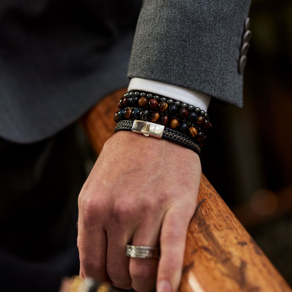 Black leather bracelet with woven silver thread, handmade with Sterling 925 silver clasp. The leather is 9mm wide and tanned with great care and craftsmanship by the craftsmen of Rebel and Rose. Beautiful cow leather that ages nicely over time. This item matches perfectly with our Sterling Silver bracelets, rings and beaded bracelets. Measure your wrist circumference and look in the size chart for the right choice.