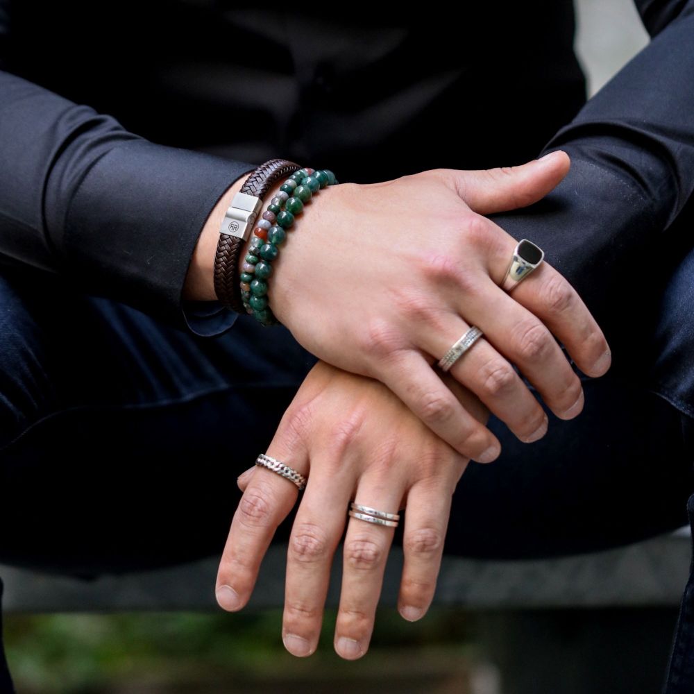 Gemstone bracelet handmade of 8mm sized Moss Agate stones with a silver colored lock.