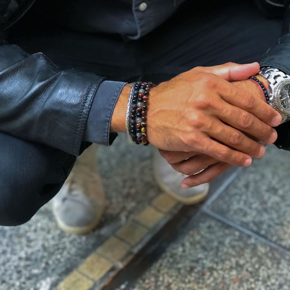 Gemstone bead bracelet, handmade from 6mm natural stone beads with a stainless steel clasp. The Rebel & Rose jewelry is easy to combine with other silver, leather or bead bracelets.