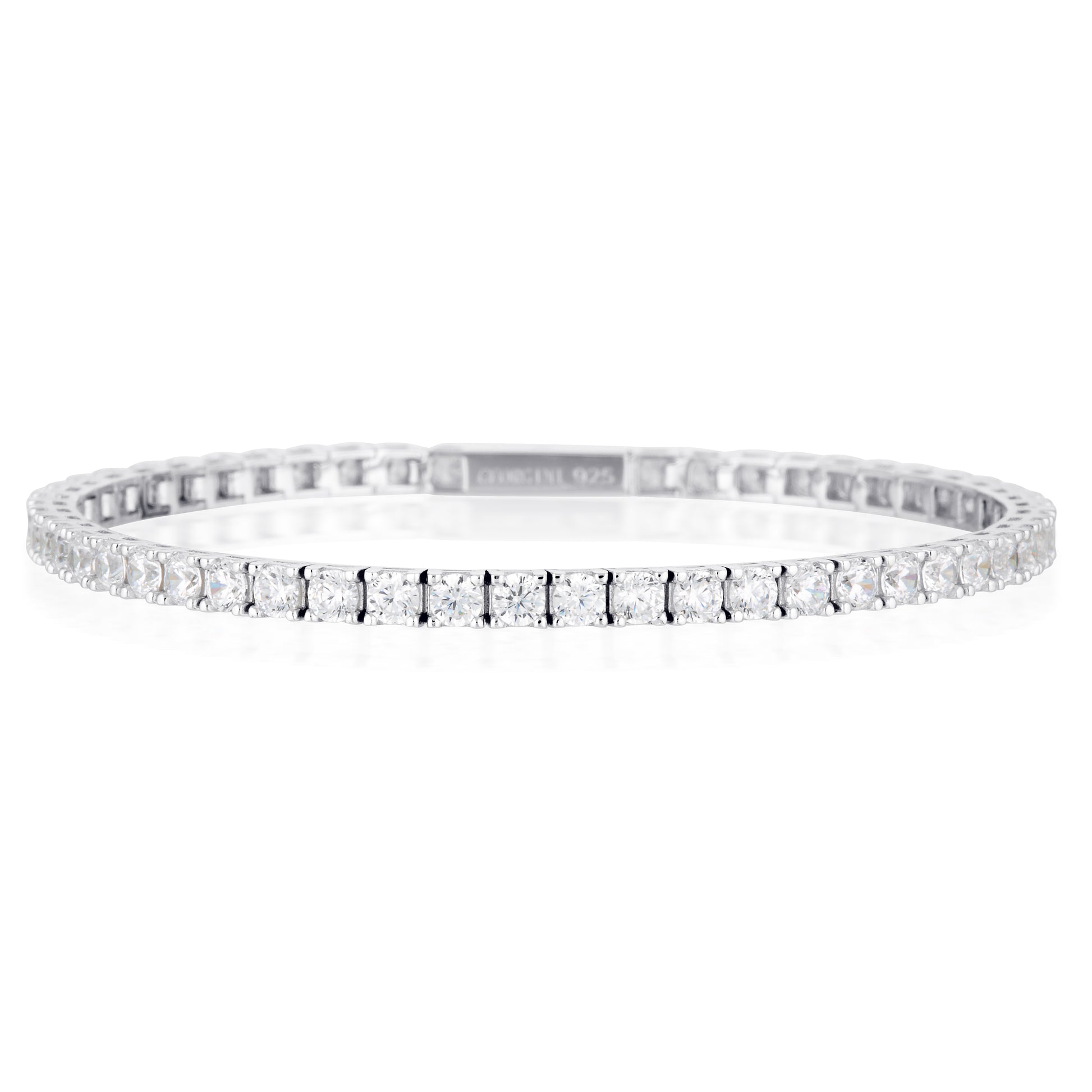 Introducing the Georgini Selena 3mm Tennis Bracelet – an embodiment of refined glamour and contemporary style. Meticulously crafted from high-quality 925 sterling silver and luxuriously plated with rhodium, these bracelets are designed to captivate and endure.