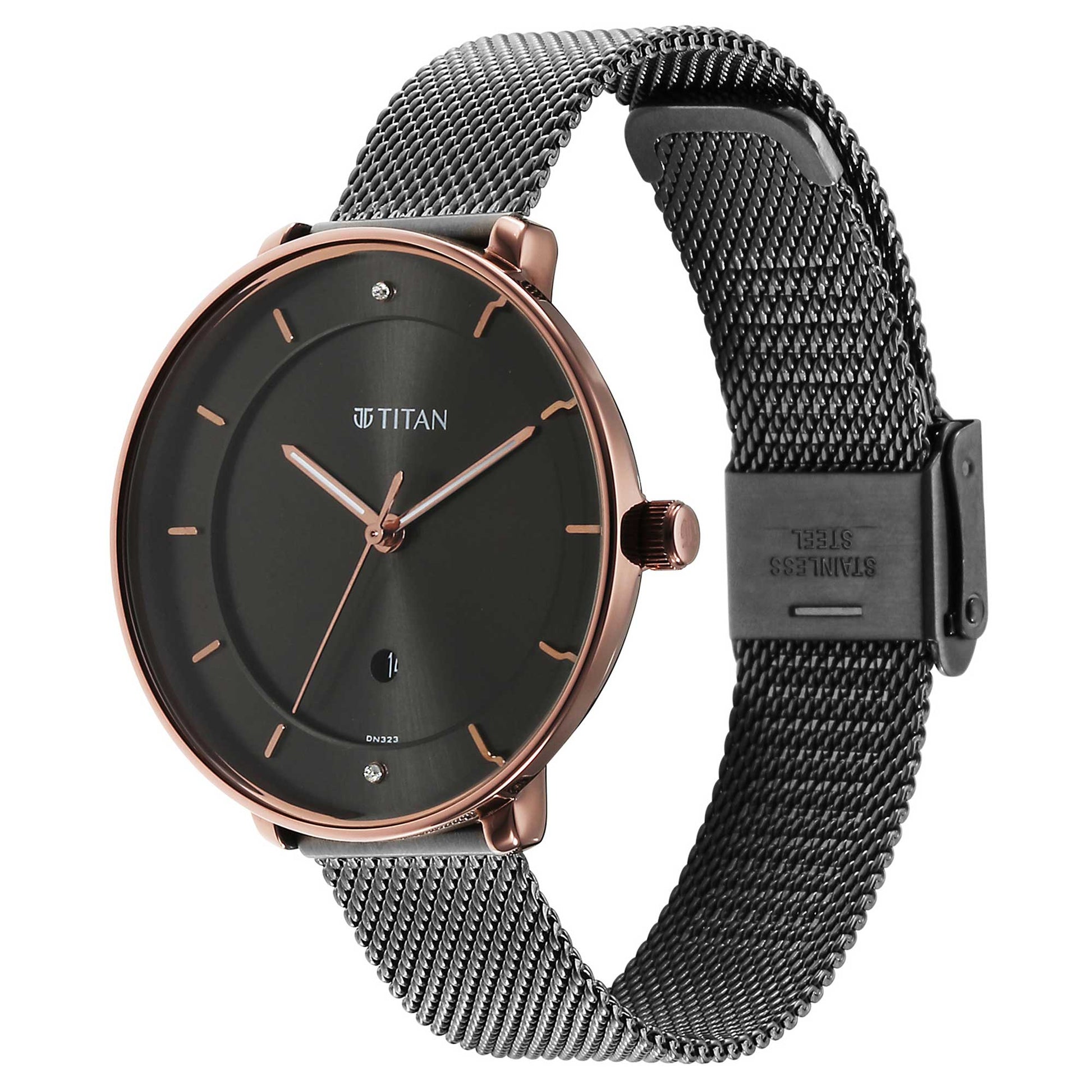 Titan Noir Anthracite Dial Analogue Stainless Steel Strap Watch for Women