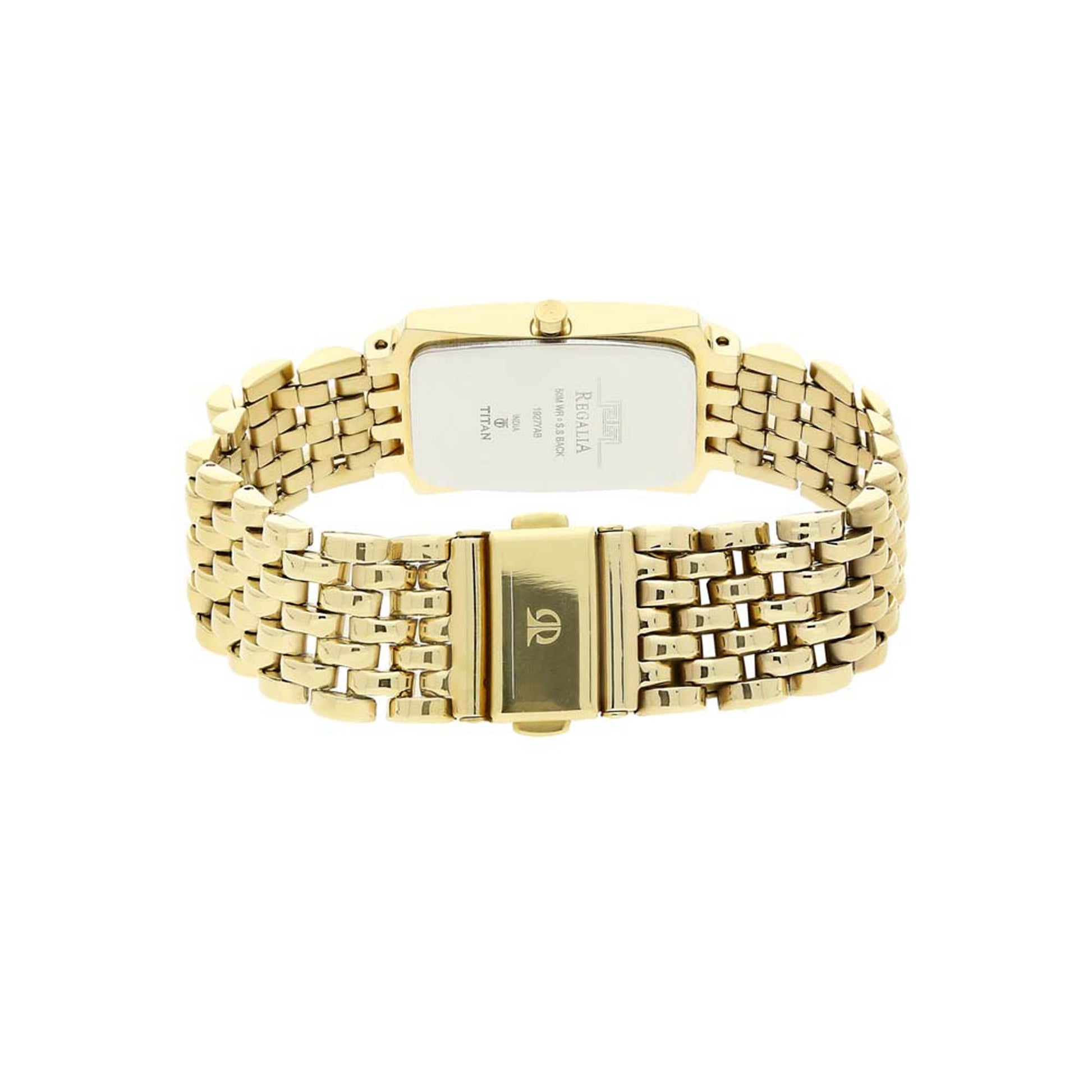 The Titan Quartz Analog Watch for Men features a clean white dial with a date function, paired with a sleek stainless steel strap. Its classic design and modern details make it a versatile accessory for any occasion.
