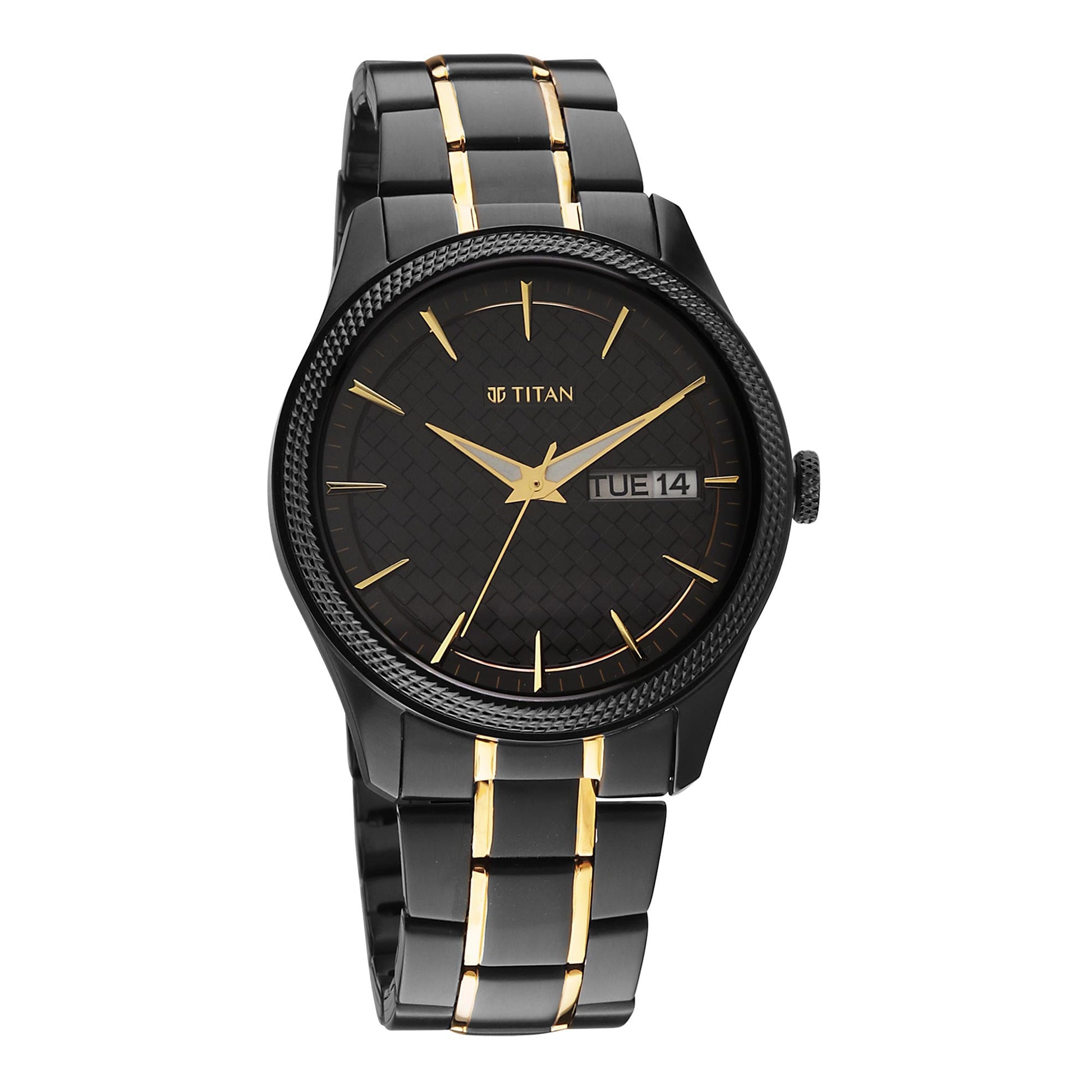 Titan Regalia Opulent Quartz Analogue with Day and Date Black Dial Two Toned Stainless Steel Strap Watch for Men