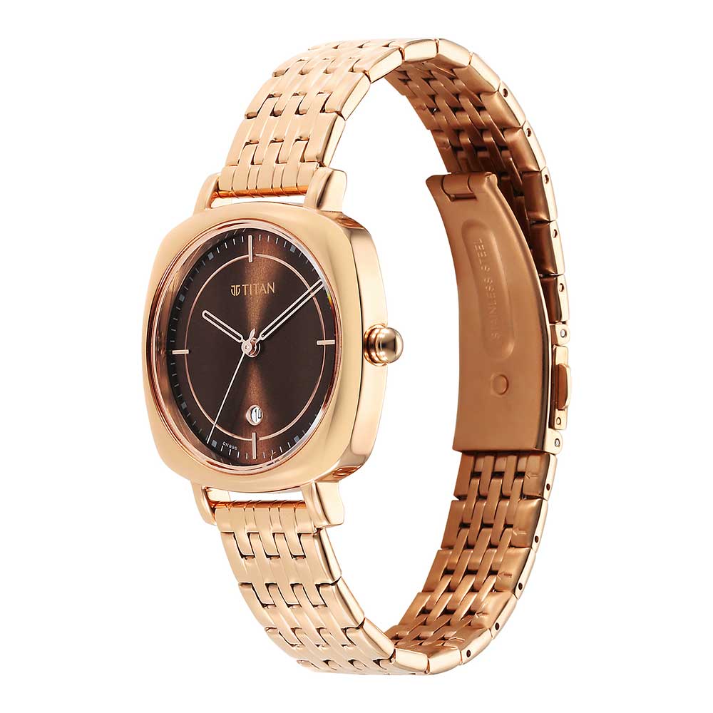 Titan Shaped Cases Brown Dial Metal Strap Watch